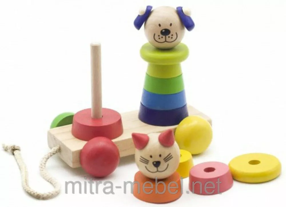 ?нтересная каталка с пирамидками. ?грушка сделана из дерева, а