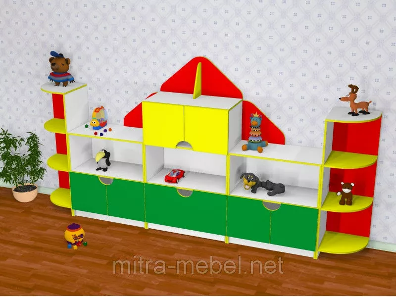 Стенка детская для игрушек "Домик" (3170*400*1600h) сочетает в себе
