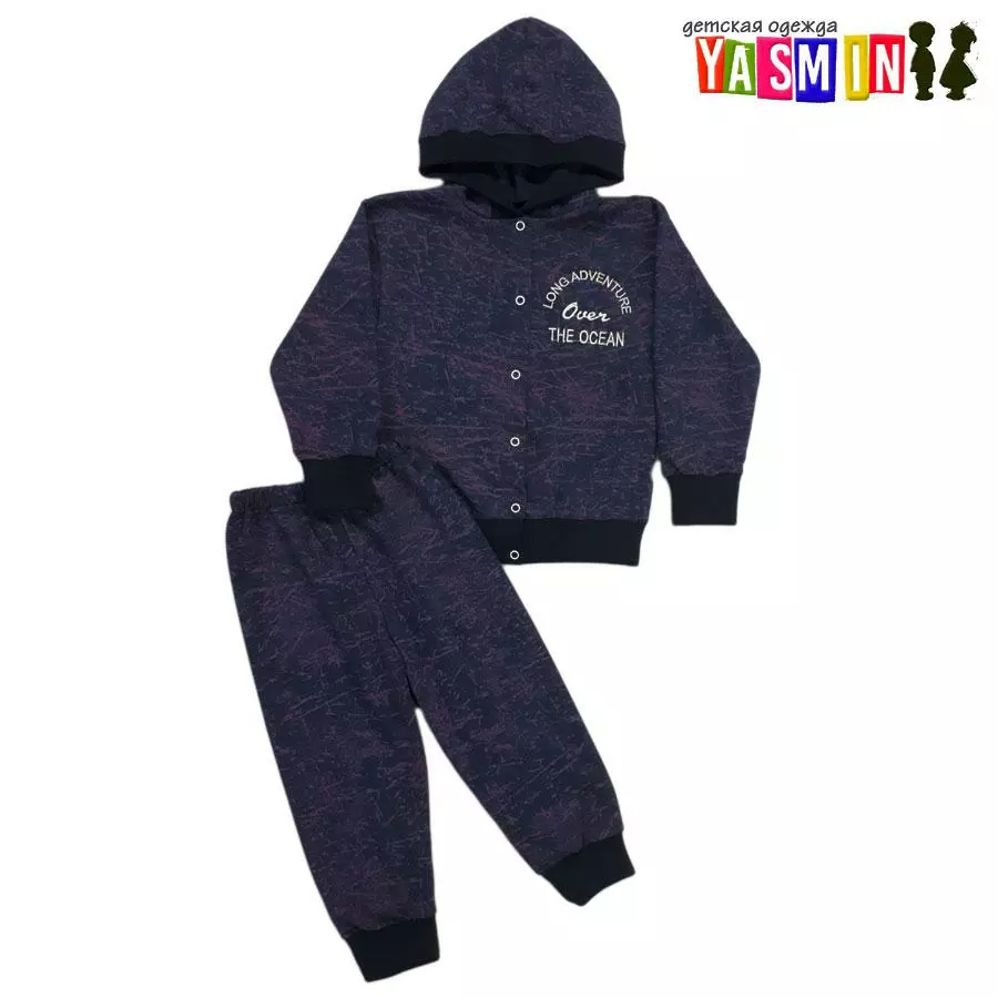 Приятная синяя расцветка наверняка понравится маленьким модникам. Этот костюм можно смело надевать и на прогулки, и в детский сад. Кофта застегивается на удобные кнопочки, что позволит малышу самостоятельно одолеть застежку. Штаны заканчиваются манжетом, поэтому данную модель можно взять немного на вырост.