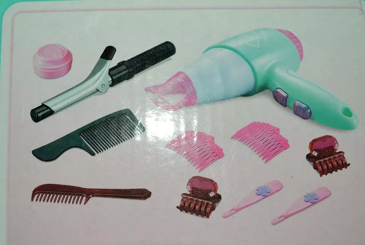 стул, фен и расческа и различными аксессуарами для девочек. Это