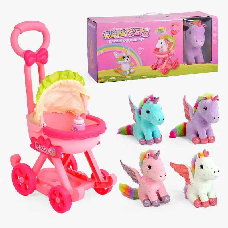 Єдиноріг з аксесуарами 933-31 E (12/2) візочок, висота 23 см, пляшечка, в коробці