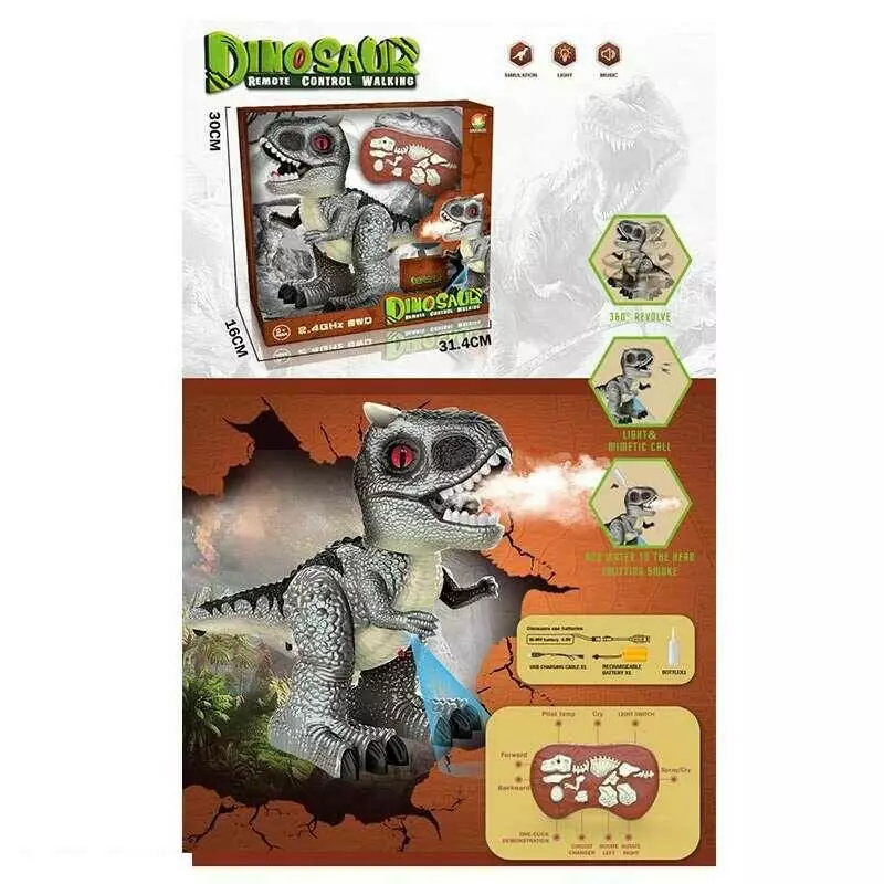 Динозавр на радіокеруванні 666-66 A (10/2) акум. 3.7V, пульт 2.4 GHz, обертається на 360 градусів, музика, звуки, парогенератор, світло, в коробці