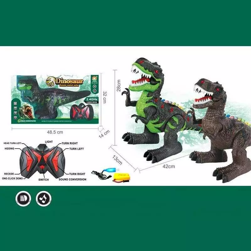 Динозавр на радіокеруванні 666-9 A (18/2) 2 кольори, акумулятор 4.8 V, пульт 2.4 GHz, USB кабель, звук, підсвічування, ходить, рухає головою, в короб