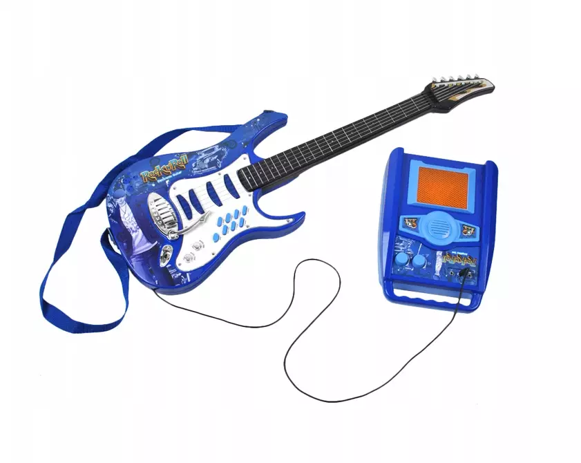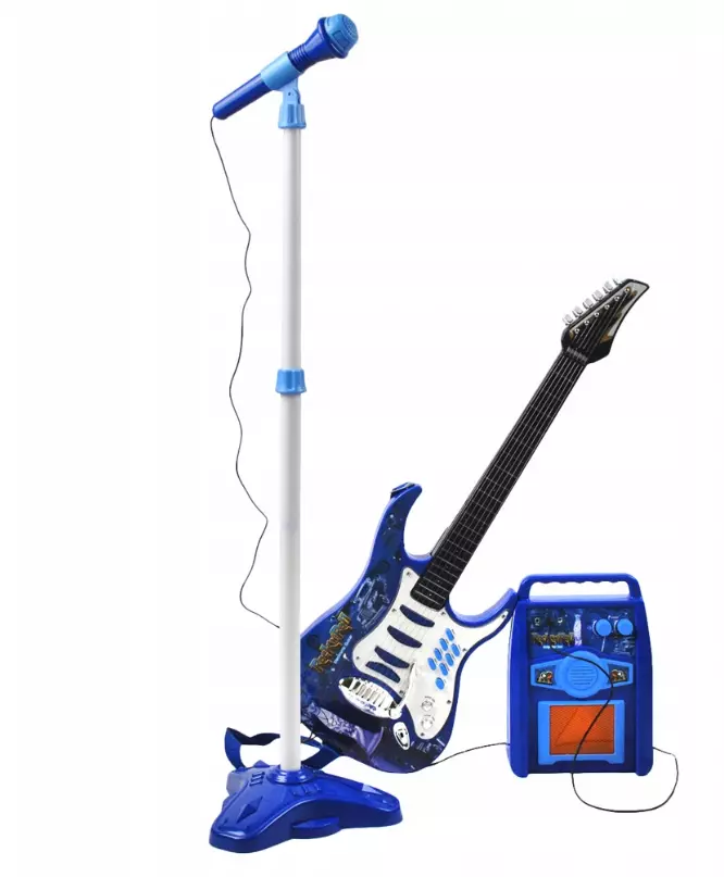 гітара для молодих рок-хлопців, з мікрофоном та підсилювачем – це