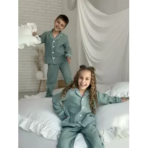 Дитяча муслінова піжама VIVA — комфорт для всієї родини Піжама з серії VIVA — це м’якість і натуральність, які відчуваються в кожному дотику. Створена для дітей ростом від 116 до 146 см (приблизно від 5 до 12 років), ця піжама дарує свободу рухів та затишок під час сну й ігор. Комплект: сорочка з довгим рукавом на ґудзиках + штани з еластичною резинкою та кулискою для регулювання Колір: натуральний евкаліпт — спокійний і універсальний Тканина: двошаровий муслін з 100% бавовни — дихаючий, м’який і гіпоалергенний Особливості моделі: - Еластична резинка та кулиска на штанах для ідеальної посадки - Манжети на штанах із можливістю підвороту — піжама росте разом із дитиною - Декоративний кант додає стильний та охайний вигляд Сорочка на ґудзиках — зручно одягати і знімати Муслін — натуральний і дихаючий матеріал, що піклується про шкіру малюка Піжама VIVA — частина сімейної колекції, у якій є аналогічні моделі для дорослих. Тепер ваша родина може насолоджуватись затишком і гармонією в однакових піжамах, створюючи теплі сімейні традиції. На дітях піжами розмір M(на зріст 116-122) Зріст: Дівчинка - 117, хлопчик -122