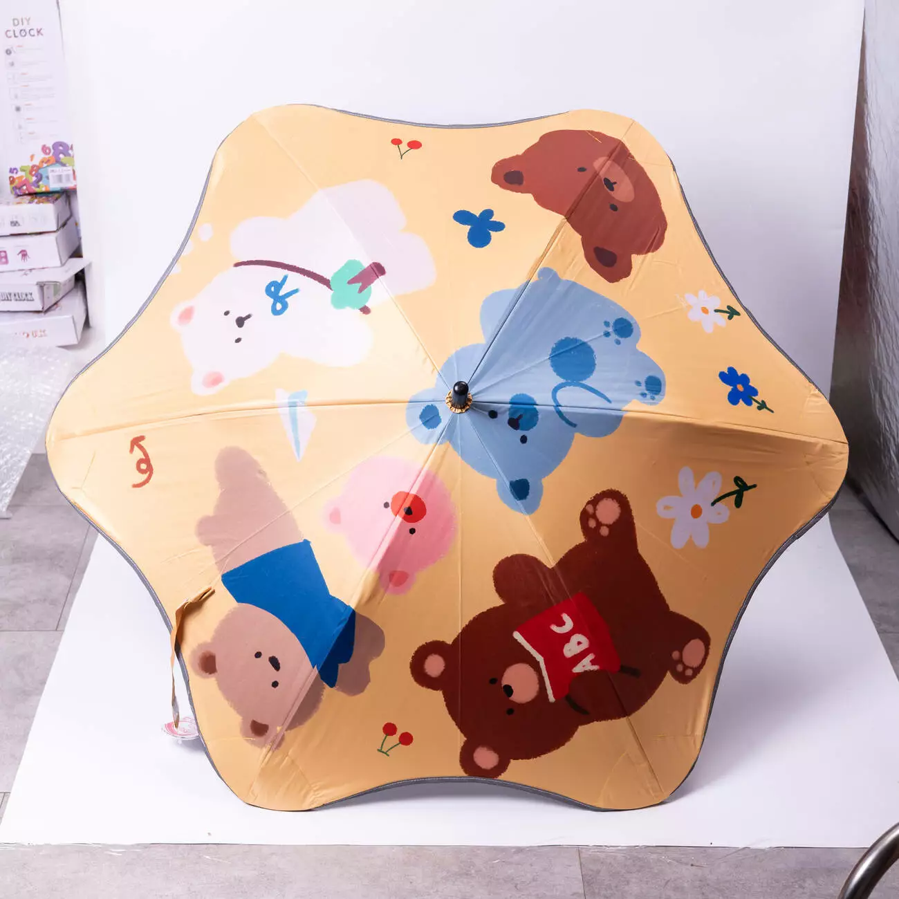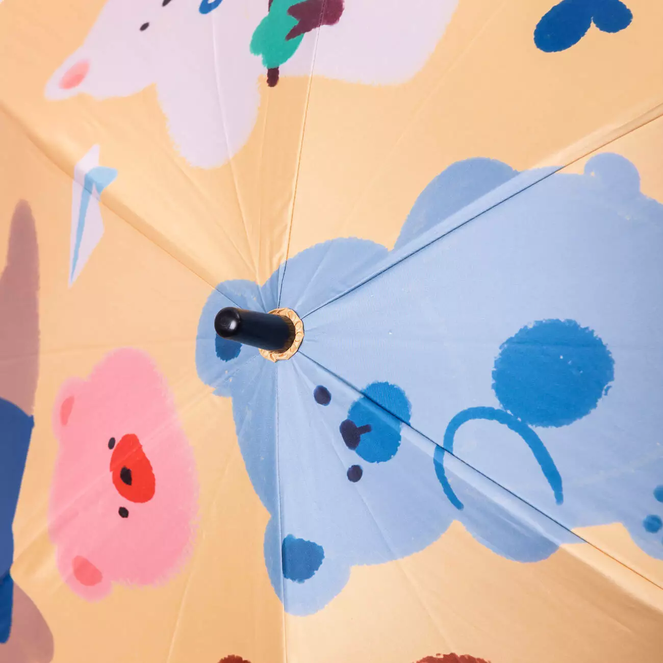 Основою парасолі є металевий стрижень, який забезпечує міцність і надійність під час користування. Ручка виготовлена з пластику, має зручну форму гака, що дозволяє дитині легко тримати парасолю в руці або підвішувати її. Конструкція зі сталевими спицями додає стійкості та допомагає утримувати купол у правильному положенні навіть під час сильного вітру.
