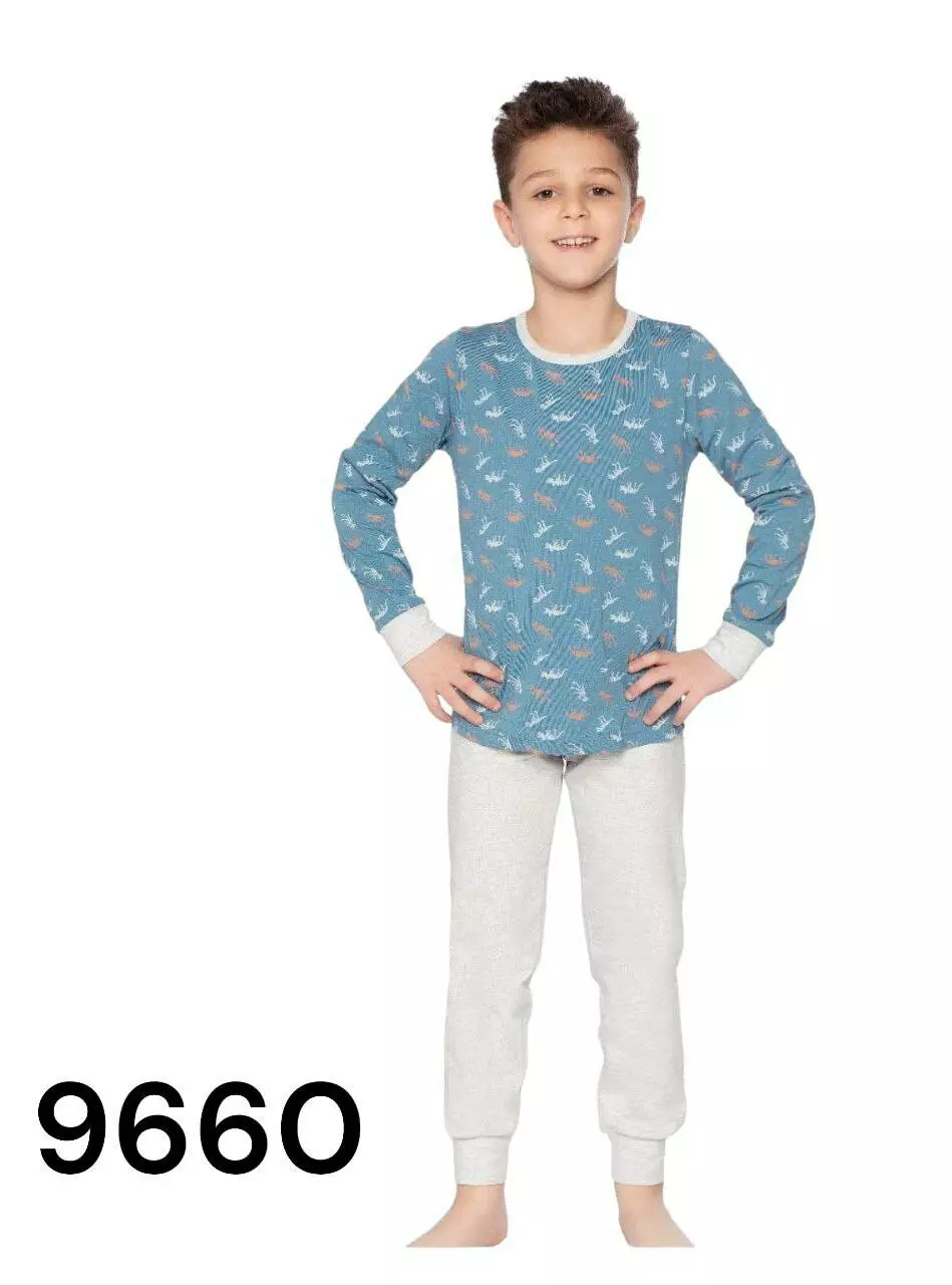 Зручна та практична піжама для хлопчиків з принтом динозаври.