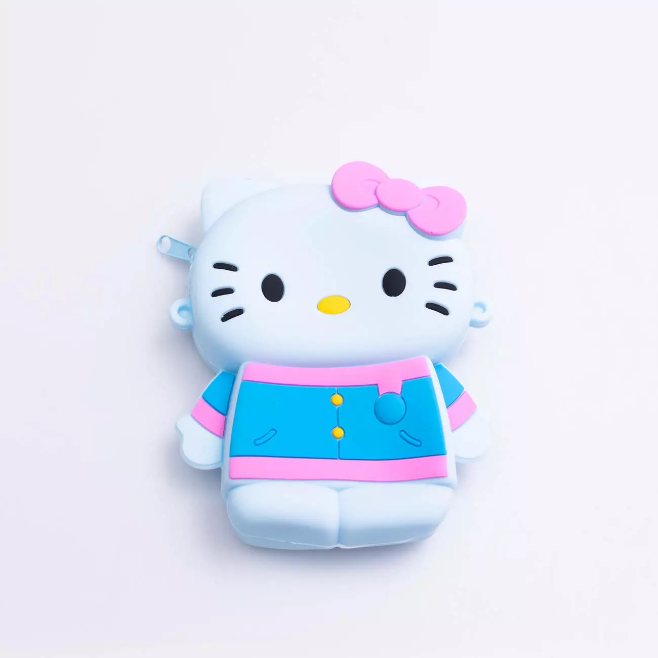 Мила сумочка-кроссбоді у вигляді Hello Kitty – яскравий та практичний аксесуар для дітей та шанувальників персонажа. Корпус виконаний з м'якого силікону, форма повторює силует знаменитої кішечки: округла голова з бантиком, чорні вічка та вусики, маленький жовтий носик. Низ сумочки стилізований під одяг Hello Kitty.