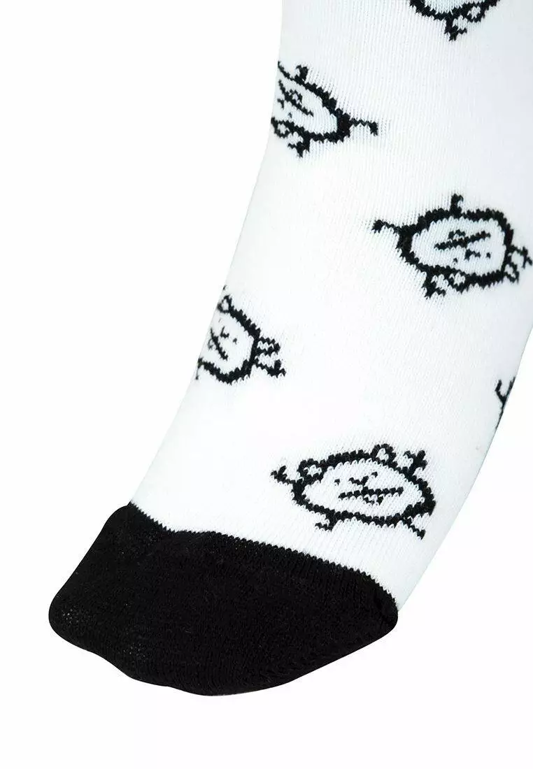Високі білі гольфи з чорним принтом. Мають резинку, не