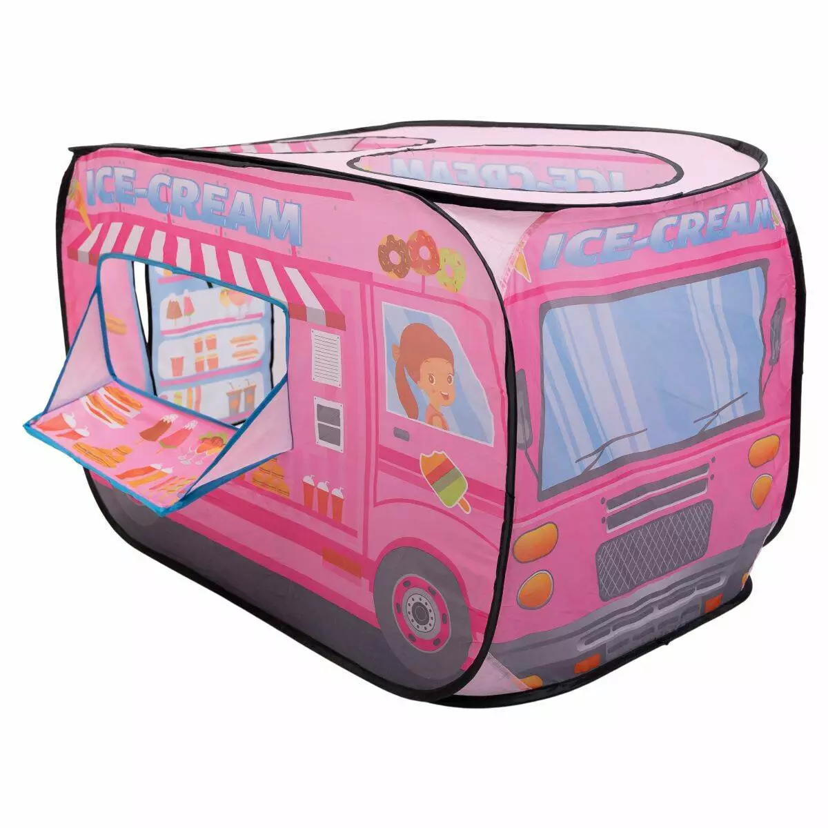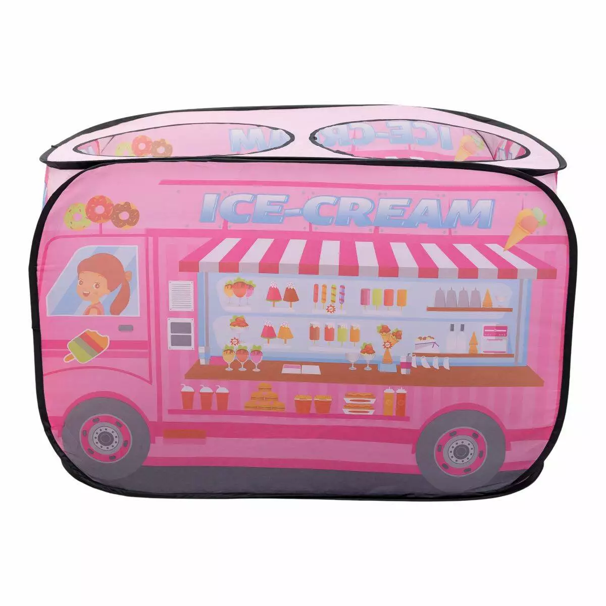 Дитячий намет для дівчинки у вигляді фургончика з морозивом – відмінний вибір не тільки для ігор, але й для розвитку уяви дитини. Такий намет дозволить приміряти на себе роль продавця у веселих рольових іграх та стане яскравим доповненням дитячої кімнати. Крім того, її можна брати із собою на пляж чи пікніки. Намет швидко розкладається та сохне, має гарну вентиляцію та забезпечує достатньо простору для кількох малюків.