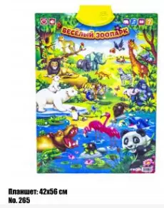 Веселий зоопарк - це навчальний дитячий планшет з тваринами, який перетворить процес навчання дитини в захоплюючу гру і значно спростить його. Іграшка оснащена 6-ю режимами гри: 1. Слухаємо розповіді про тварин-при натисканні на тваринного планшет скаже його назву російською і розповість про нього цікаву інформацію. 2. Слухаємо мелодії 3.Слушаем вірші про тварин 5. Іспит - планшет запропонує малюкові перевірити свої знання, відповідаючи на питання. Озвучування російською. Розміри планшета: 42 ? 56 см