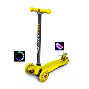 Самокати MAXI з колесами що світяться. характеристика: -Рама виготовлена з алюмінію. -Алюмінієве регулююче кермо: від 60 до 75 см. -Матеріал деки: посилений пластик - витримує велику вагу. -Колеса поліуретанові, при катанні світяться: переднє діаметром 12 см, заднє - 8,5 см, оснащені підшипниками ABEC-7 -Заднє гальмо. -Підходить для дітей старше 3 років. -Найбільше навантаження - 55 кг.