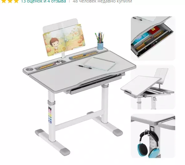 Нахил столешниці до 40° – підтримує правильну поставу, знижує