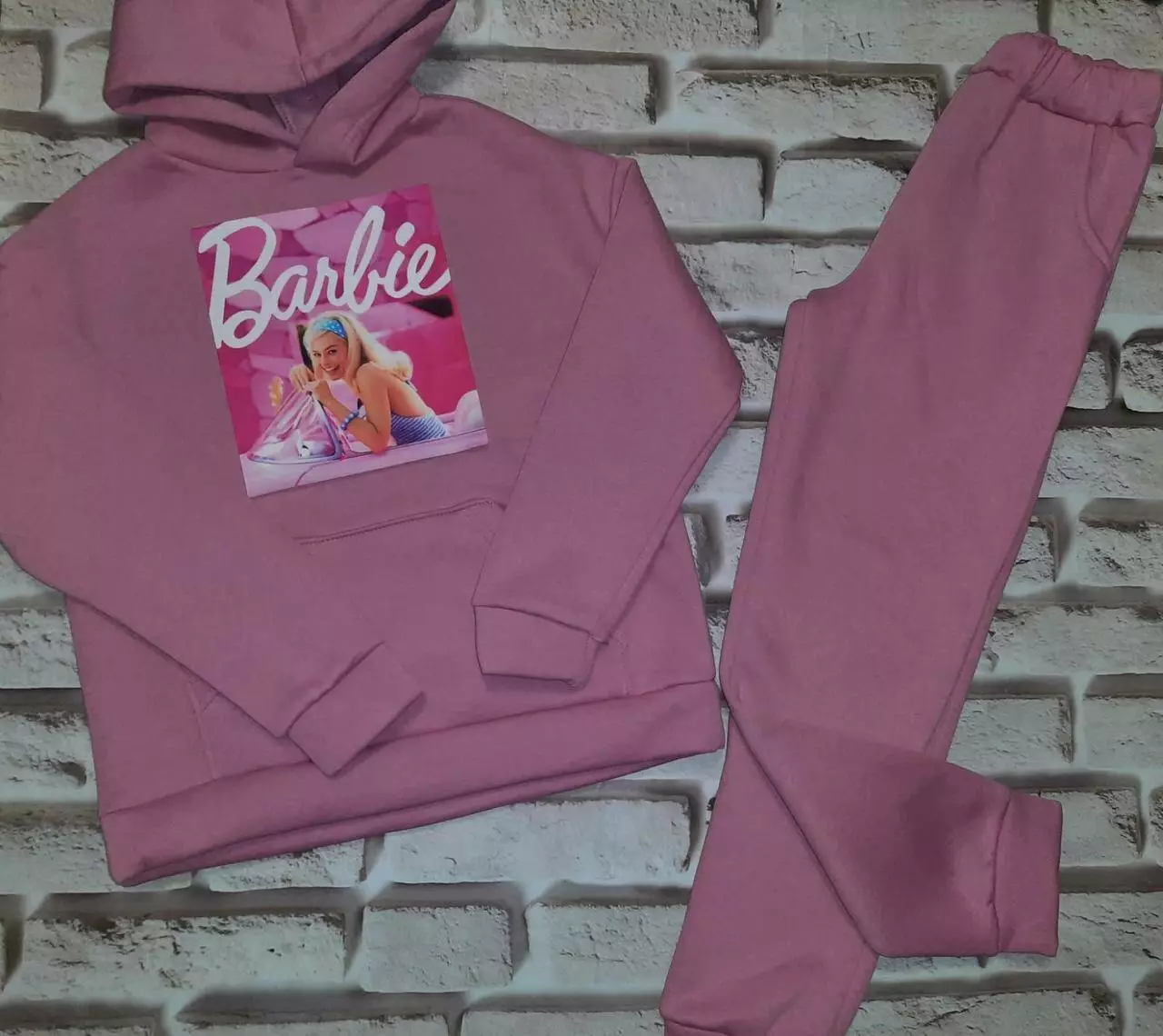 Дитячий теплий спортивний костюм на дівчинку колір рожевий (Плотна, тепла тканина, не кошлатиться) "Барбі"