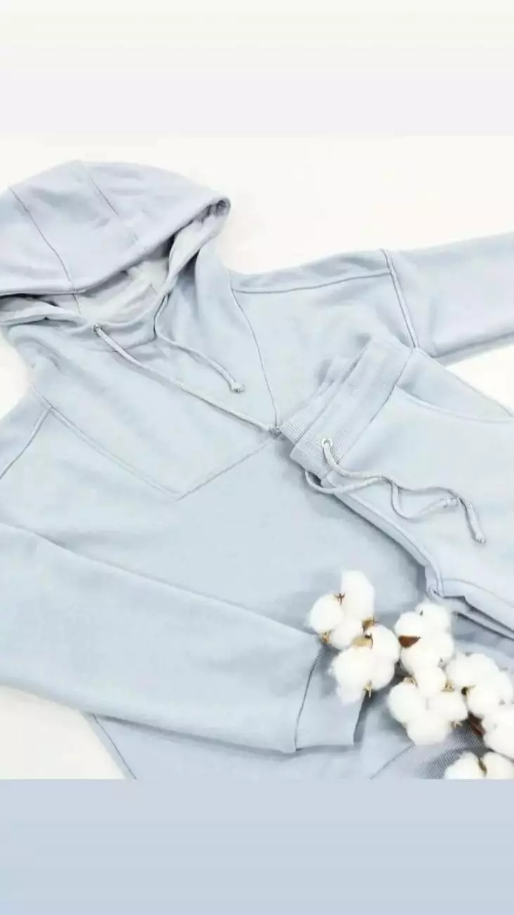 Худі костюму виконано в класичному вільному крої, прямого силуету,
