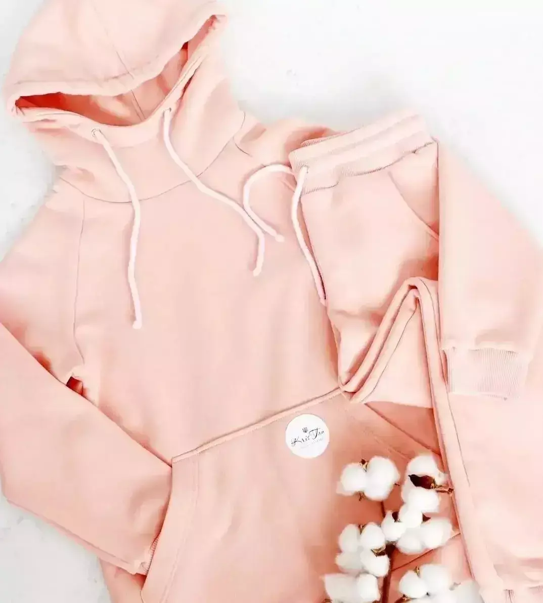 Худі костюму виконано в класичному вільному крої, прямого силуету, сидить нижче попи. Капюшон подвійний, теплий.
