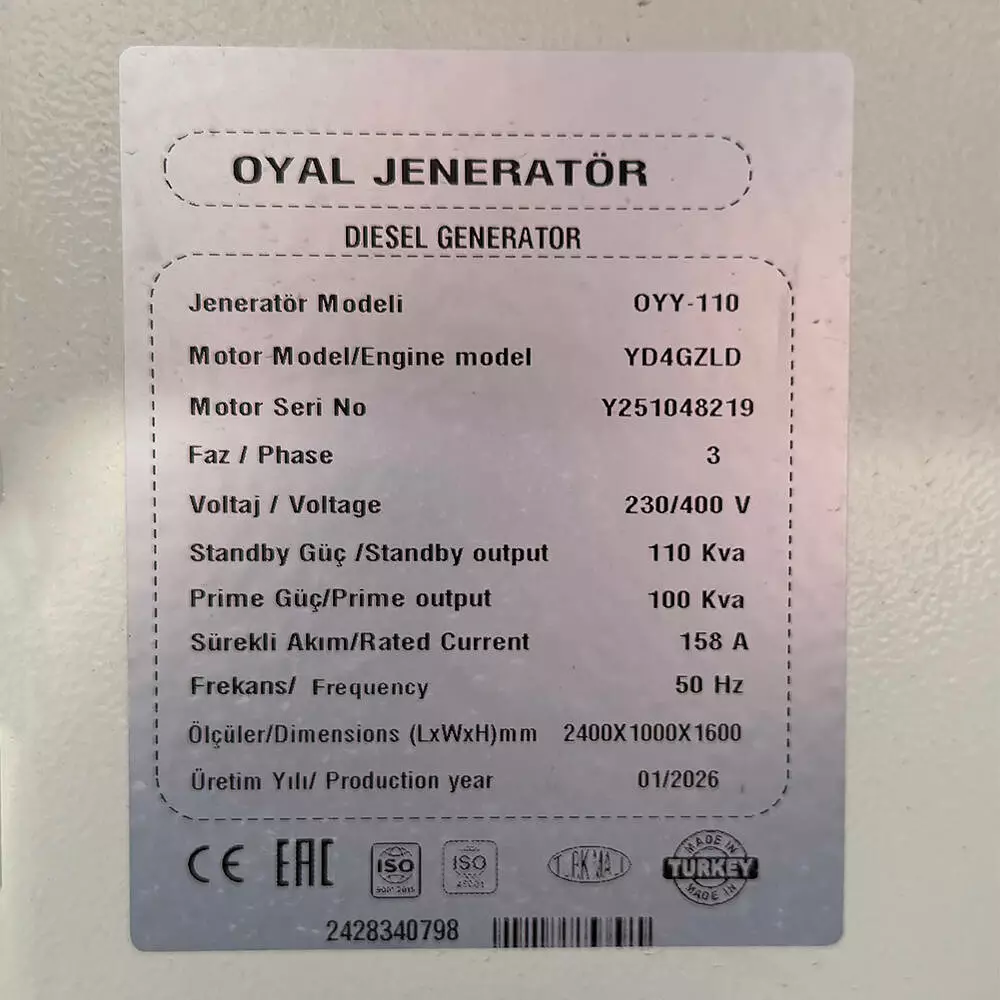 Дизельний генератор OYAL OYY-110 YANG DONG Y4110ZLD 110 кВА/88KW,