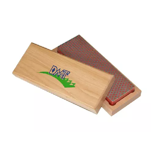 Розмір точильного каменю становить 152мм х 51мм х 19 мм.відповідно до класифікації компанії DMT, точильний камінь має зернистість fine (дрібнозернистий, розмір алмазного зерна 25 мкм, 600 меш). Отвори в металевій пластині призначені для збору стружки, яка утворюється при заточуванні ножа. Дерев'яна коробка має привабливий зовнішній вигляд. Це дозволяє використовувати алмазний точильний камінь DMT Diamond Whetstone™ в якості подарунка любителю і цінителю ножів, який вважає за краще мати в своєму арсеналі якісні аксесуари для догляду за холодною зброєю. Точильний камінь в коробці знаходиться на зручній і безпечній висоті, гумові ніжки запобігають ковзанню бруска під час заточування ножа або інструменту.