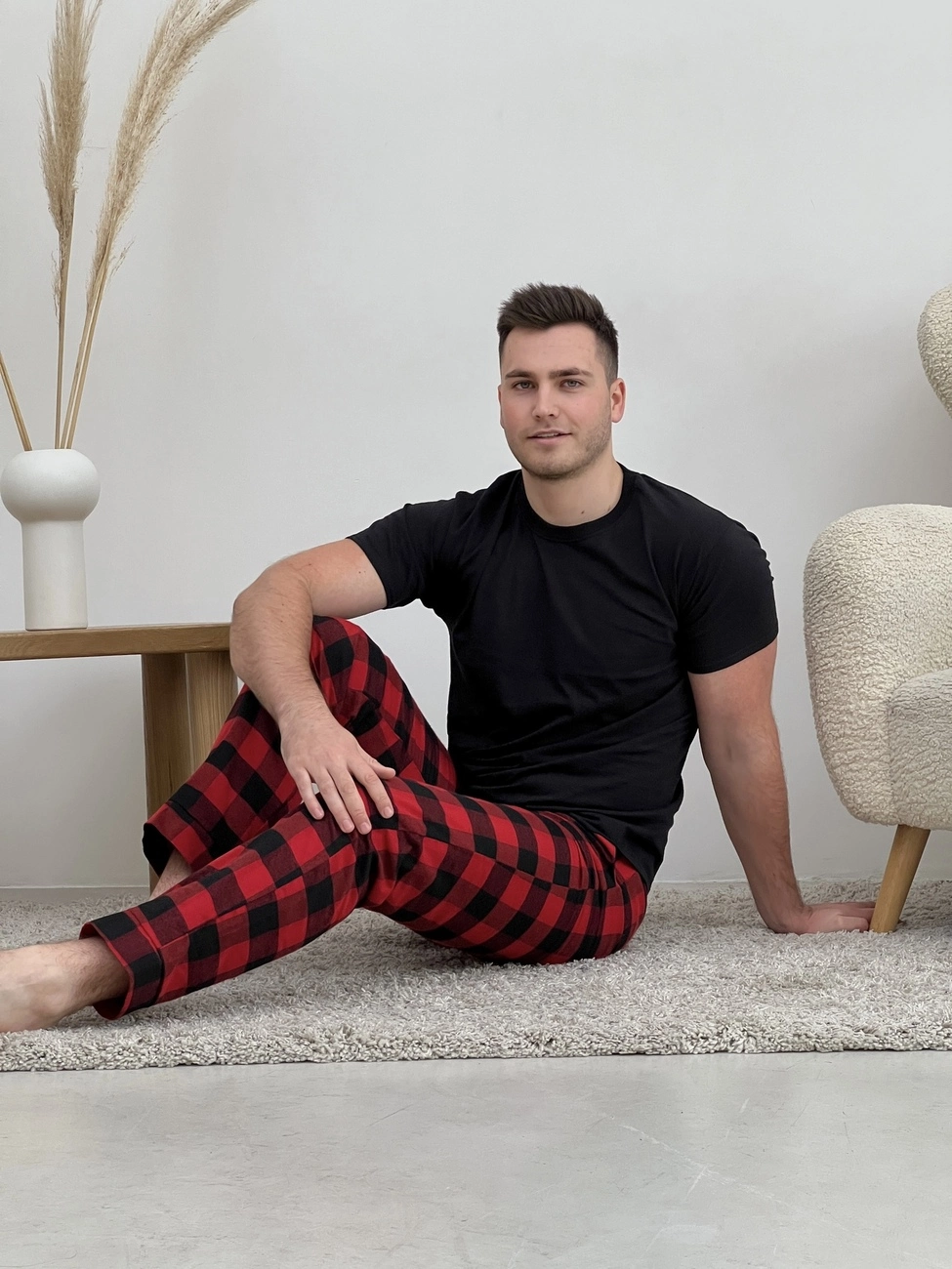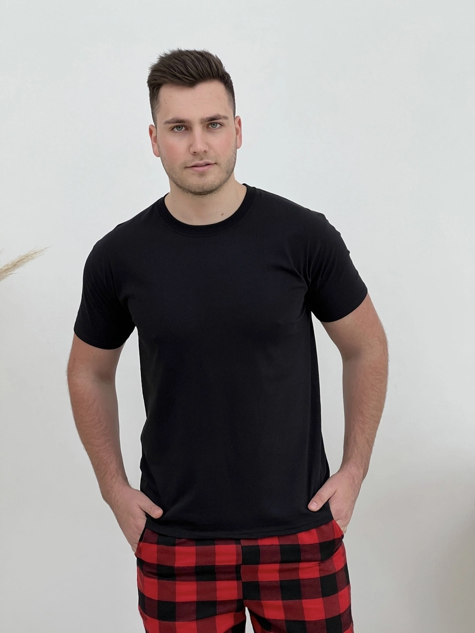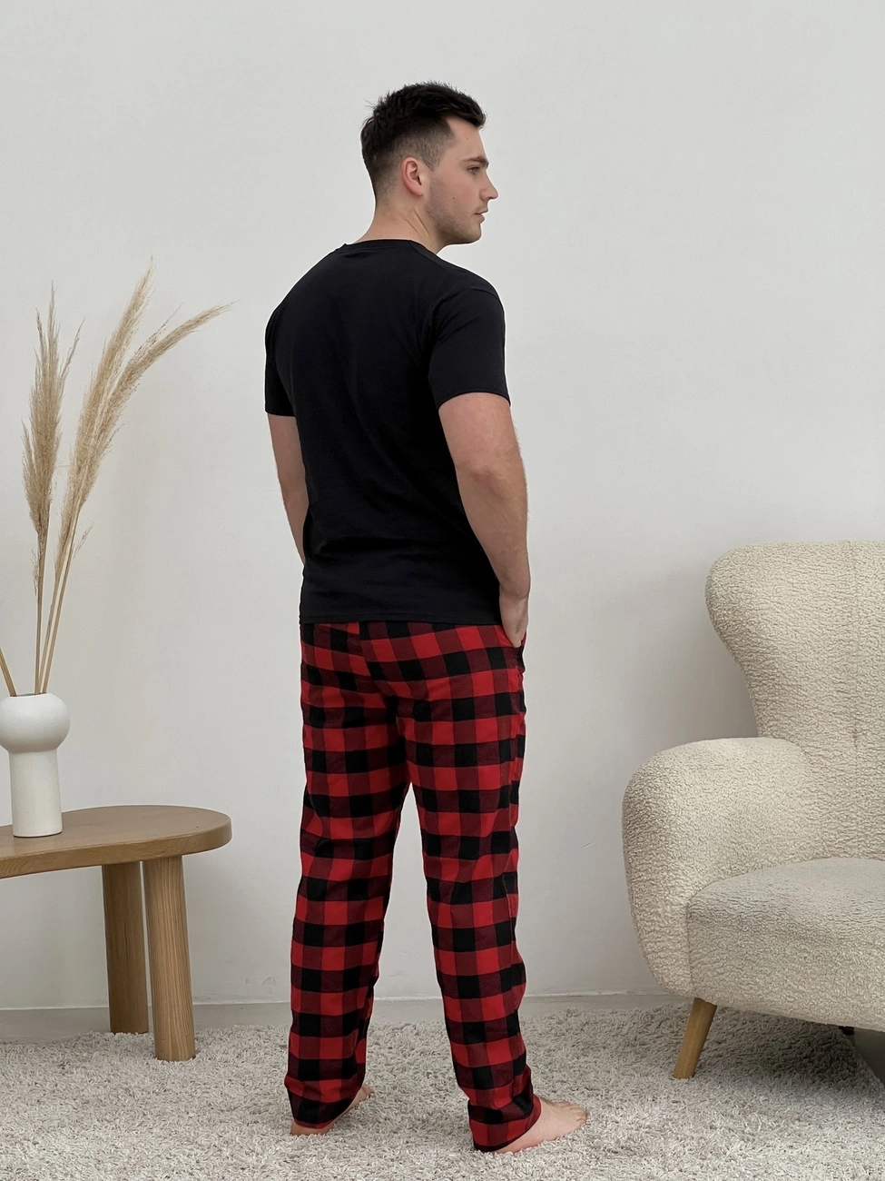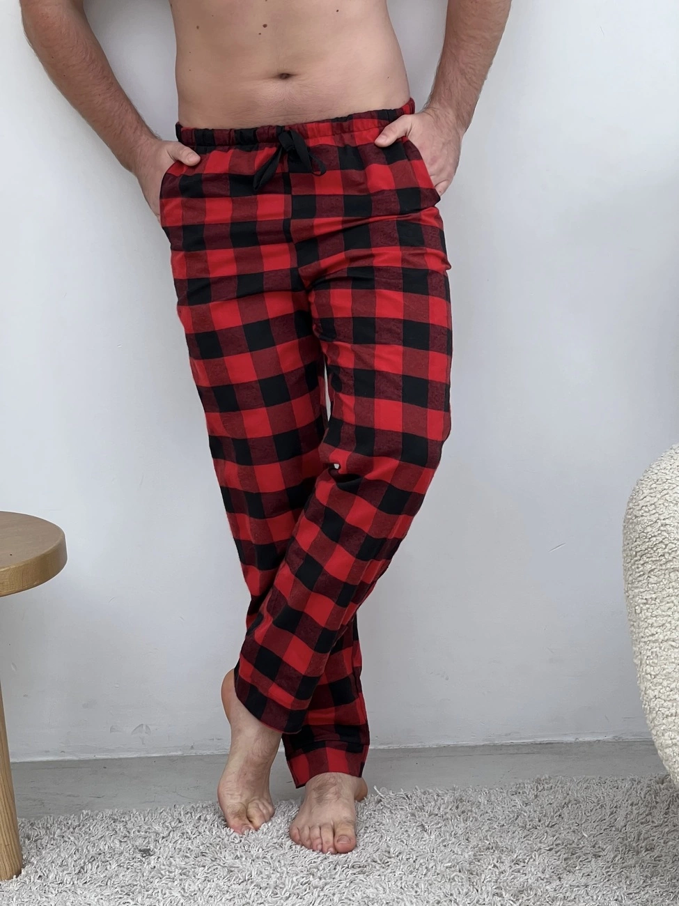 Затишні фланелеві штани з кишенями. Пояс на резинці з регульованою куліскою. Штани: Колір: клітина червоно/чорна. Тканина фланель: бавовна 70%, поліестер 30%, Туреччина Щільність: 160 г/м2 Ефект: легке начісування, одностороннє (всередину) Чоловіча футболка- 100% бавовна Колір: чорний (f02) Размер: L; XL; M; 2XL