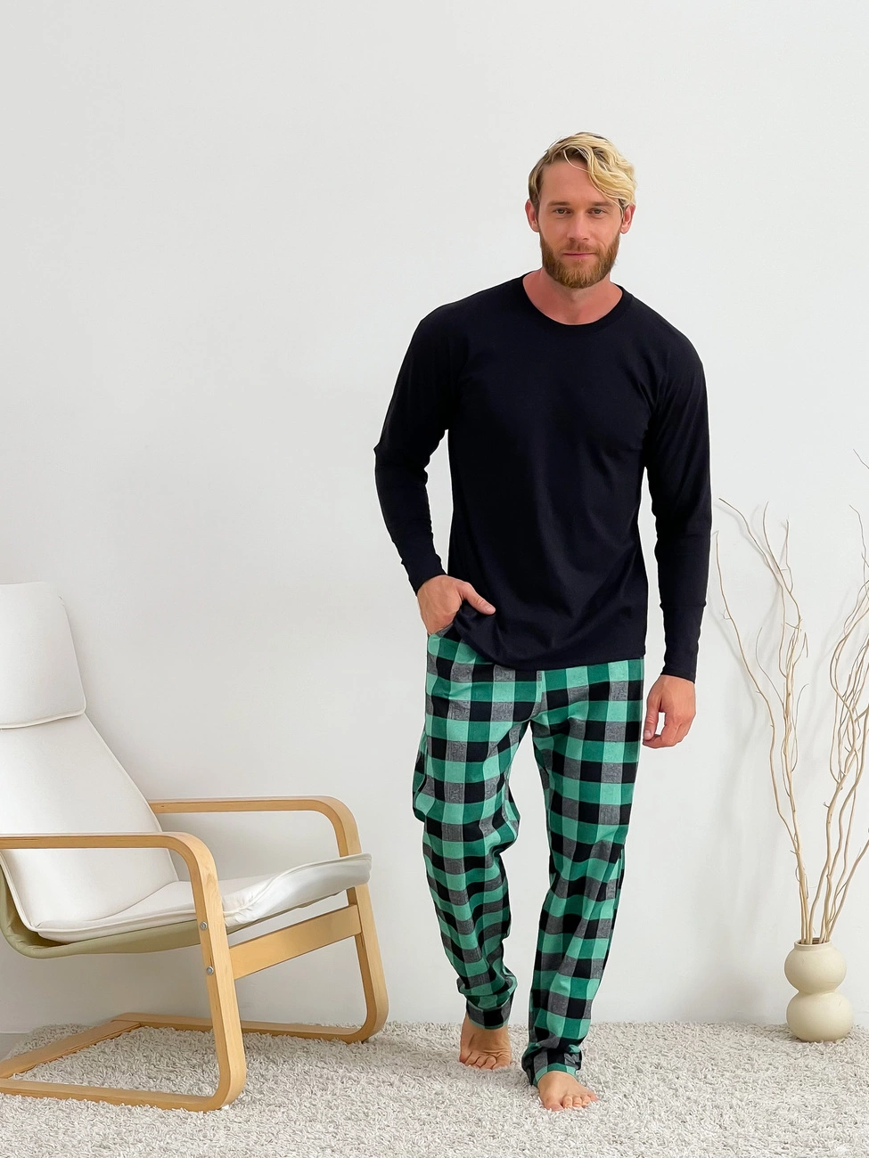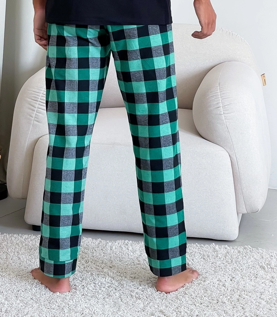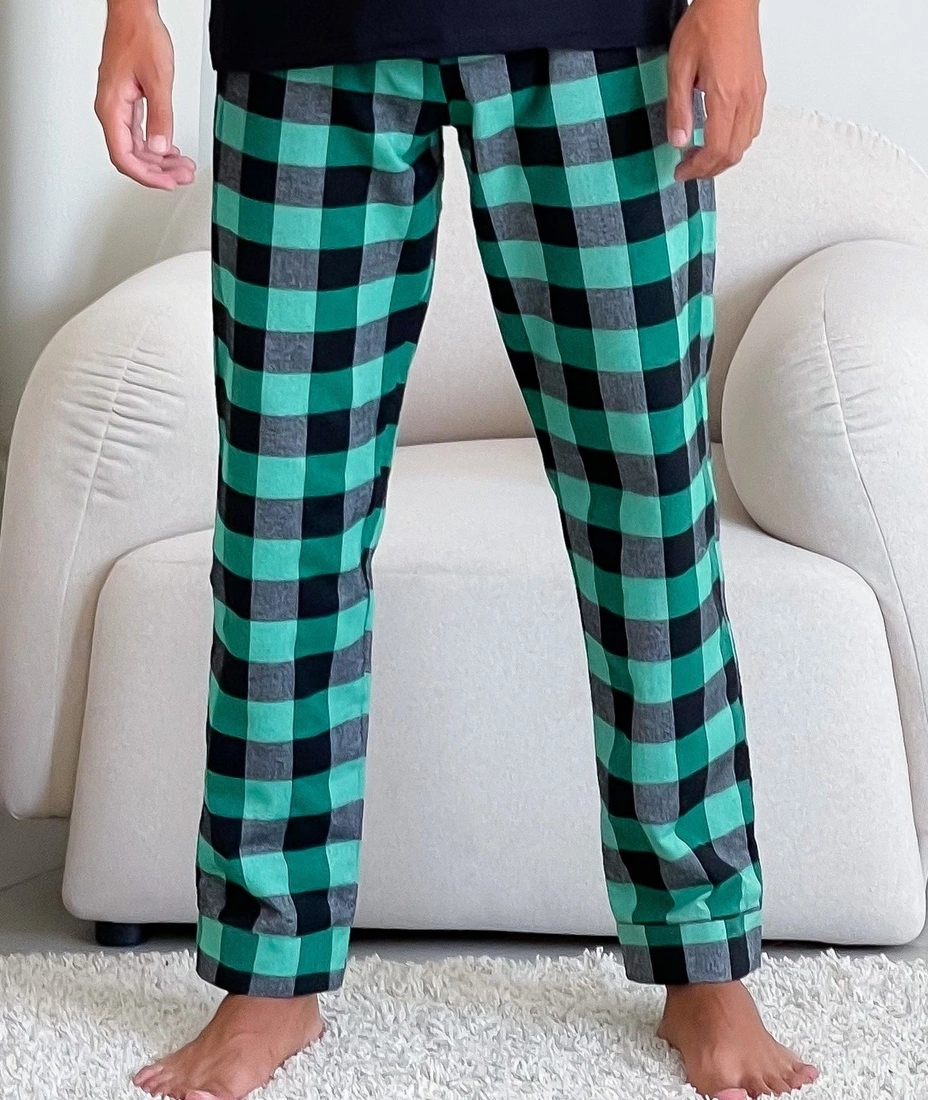 Домашня піжама для чоловіків COSY із фланелі (штани+лонгслів) зелено/чорний