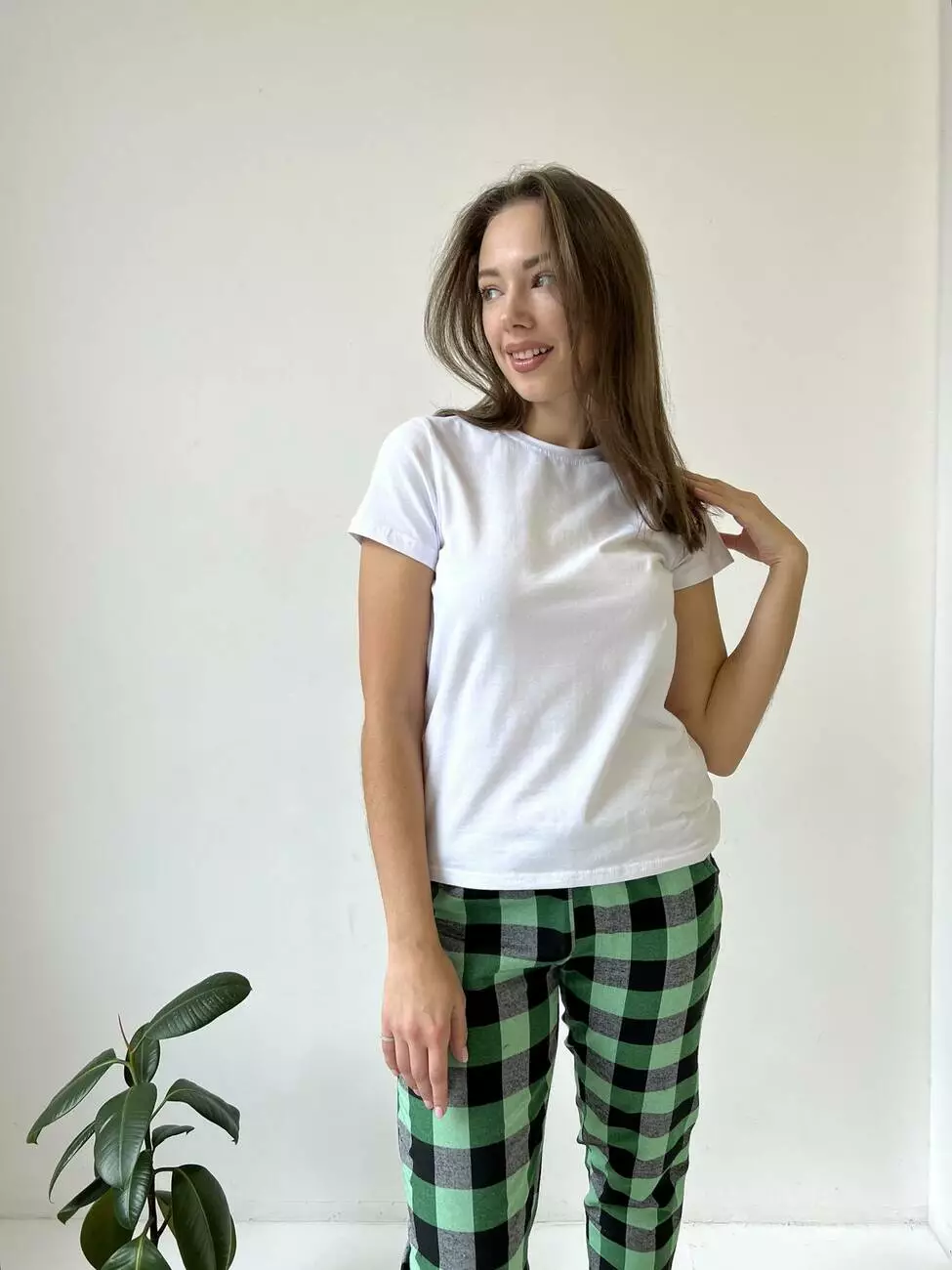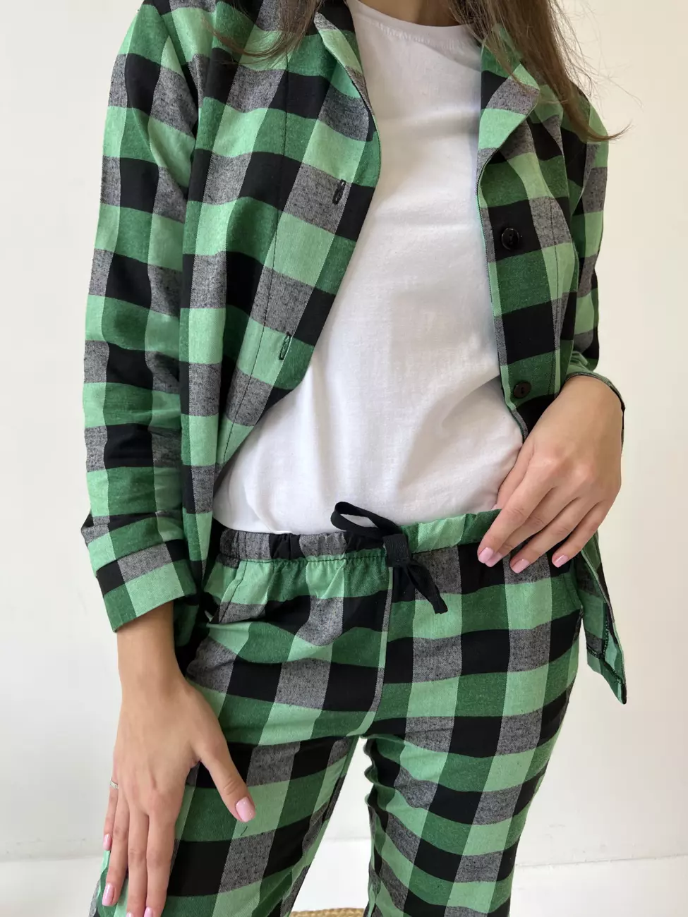 Домашня жіноча піжама 3-ка COSY у клітинку зелено/чорна (сорочка+штани+футболка)