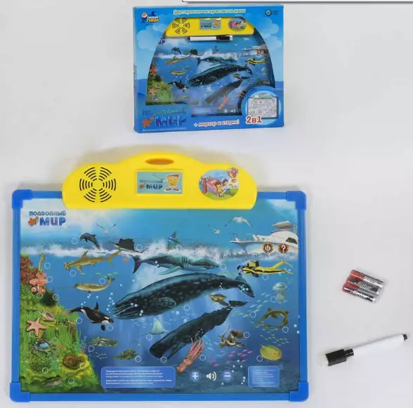 Ця дошка, в цікавій та захоплюючій формі, допоможе дитині запам'ятати планети Сонячної Системи. Веселі вірші про кожну планету легко запам'ятовуються і в доступній формі описують особливості кожної планети. Управління: - Кнопка увімкнення/вимкнення; - кнопка регулювання гучності; - Кнопка інформації – про планети/сузір'ї; - кнопка Вірші; - кнопка Повтор; - Кнопка Питання – слухай запитання, відповідай на них та перевіряй свої знання. На звороті дошки можна малювати маркером. Озвучування російською мовою. Працює від 3-х батарейок типу "ААА" 1.5V (у комплекті).