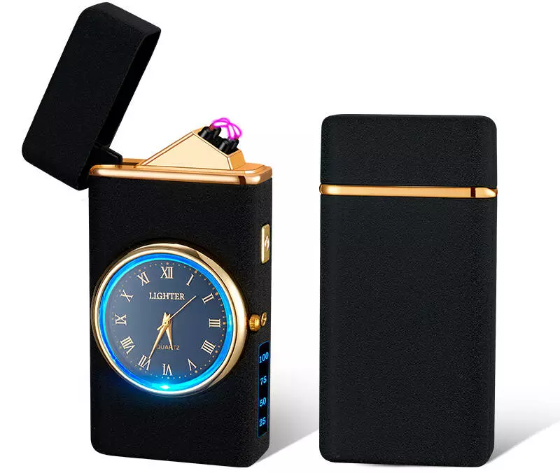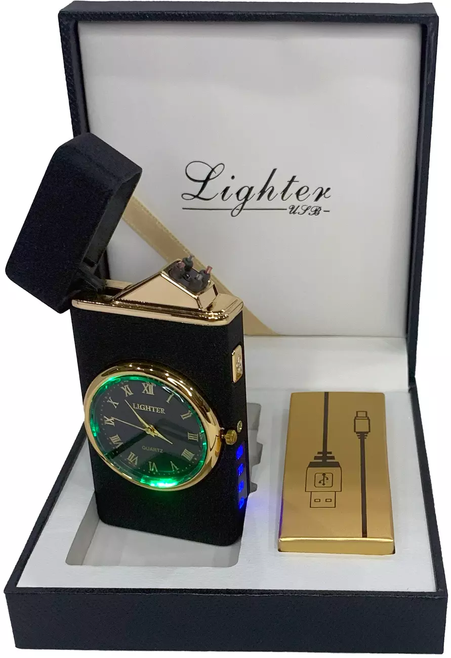 Дуговая электроимпульсная зажигалка с часами и фонариком⚡️????⏱ LIGHTER HL-466 Black mate