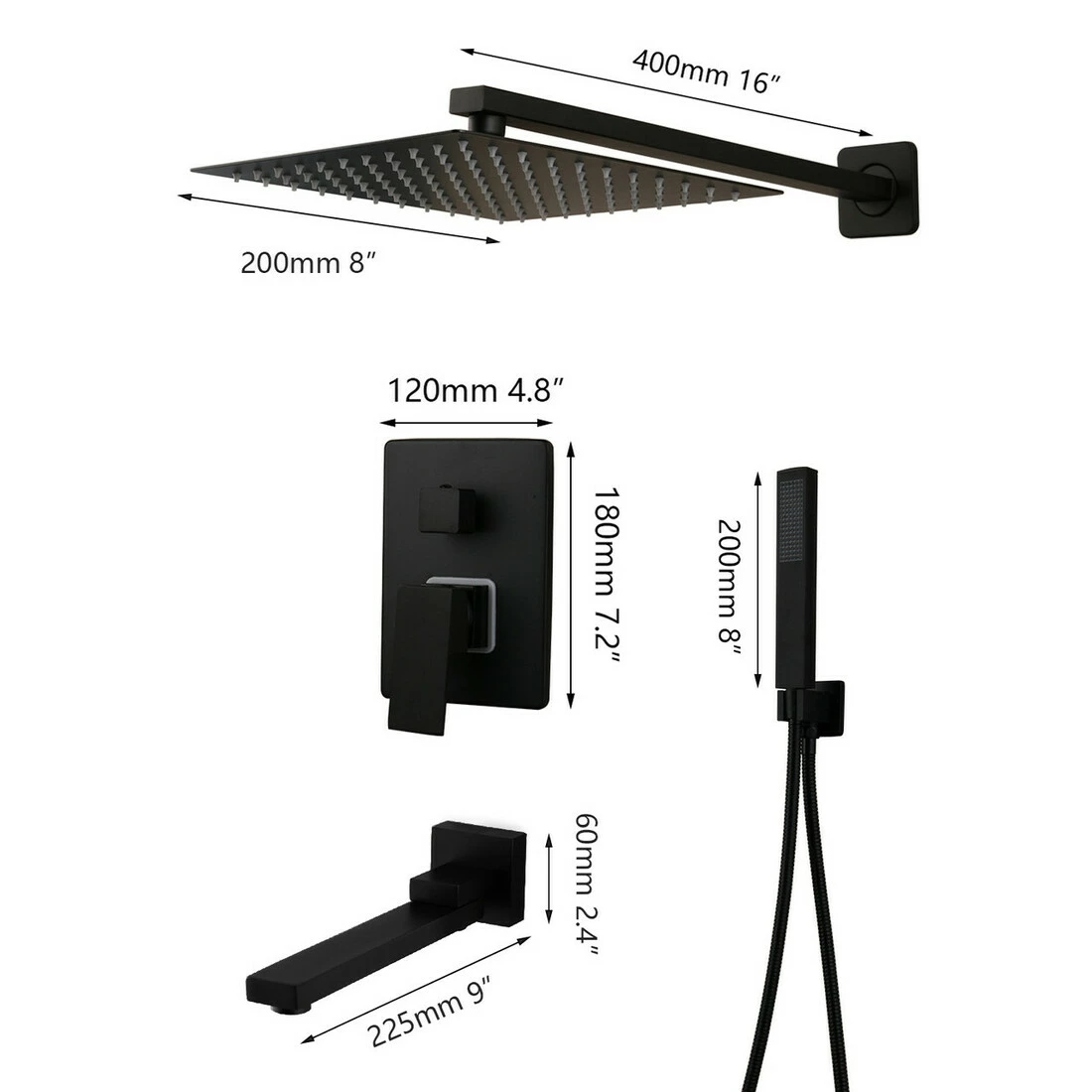 ручної лійки з тримачем, верхнього квадратного душу, душової штанги