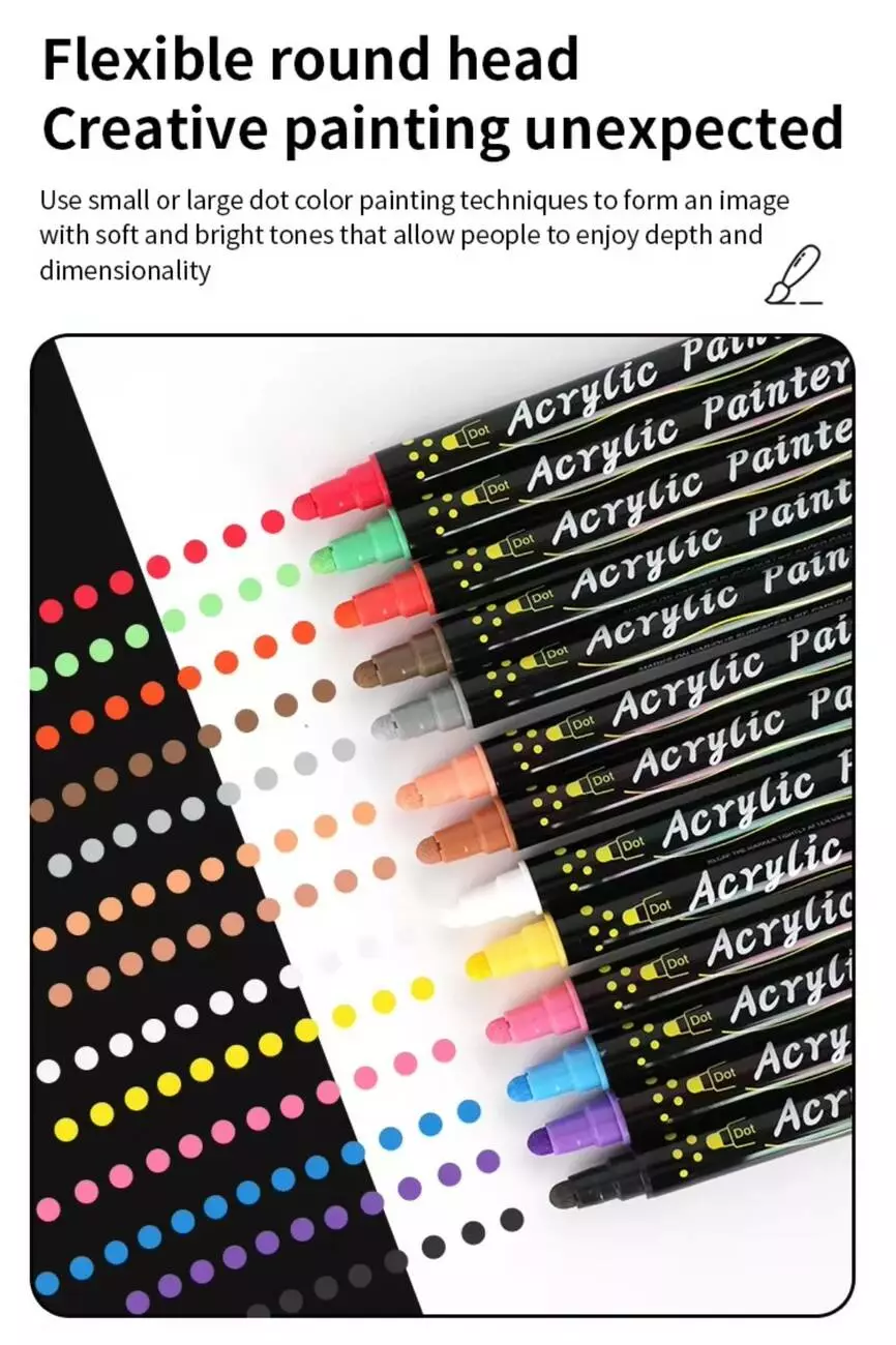 Набір акрилових маркерів для дітей — це чудовий варіант для юних художників, які люблять експериментувати з кольорами та поверхнями. Завдяки зручному м’якому наконечнику маркери дозволяють легко створювати яскраві малюнки та декор. Вони підходять для творчих занять удома, у школі або в дитячих гуртках. Маркери швидко висихають, не розмазуються та безпечні для дітей — не містять токсичних речовин і не мають різкого запаху.