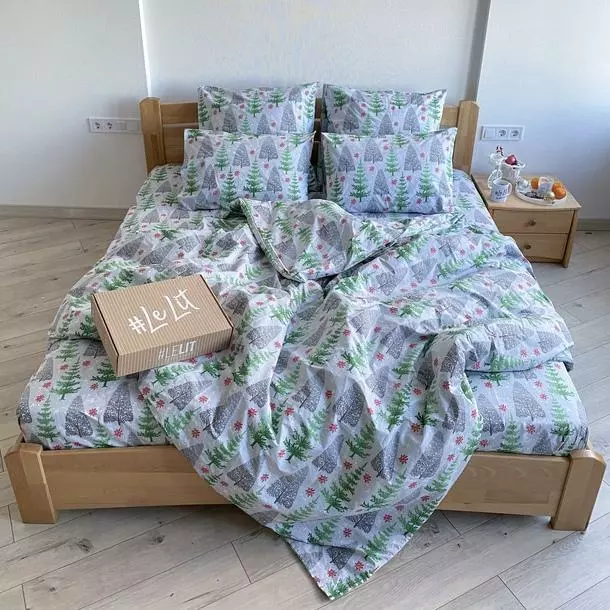 Двуспальное постельное белье LeLIT 0741 белое с принтом "Елки".