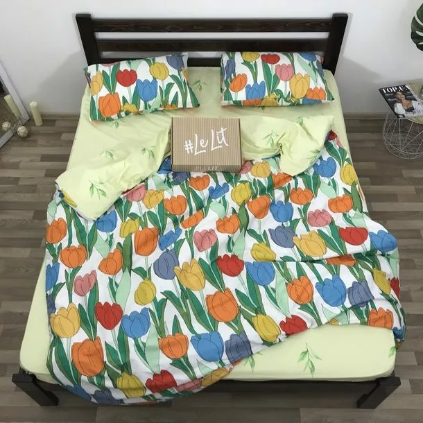 Двуспальное постельное белье LeLIT 0777 салатное с принтом "Тюльпаны"