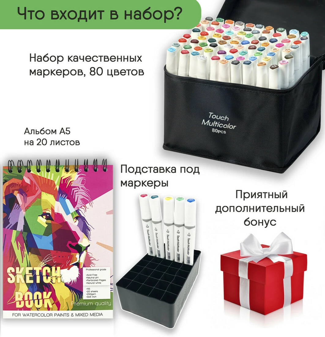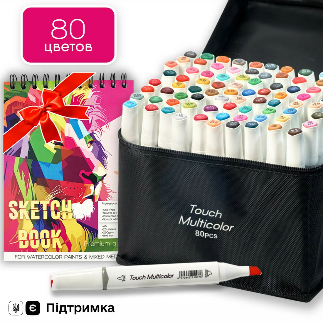 Набор маркеров двусторонних Touch Multicolor 80 цветов и Бумагу для