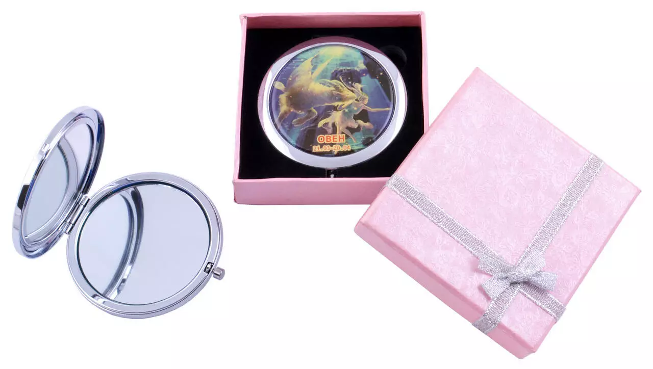 Зеркальце в подарочной упаковке- Двухстороннее- Размер: ? 70 мм