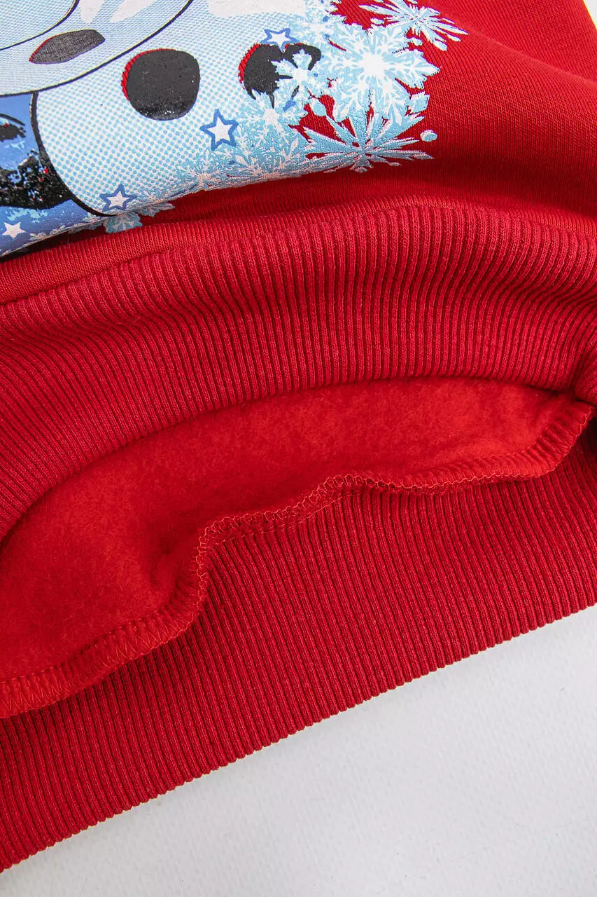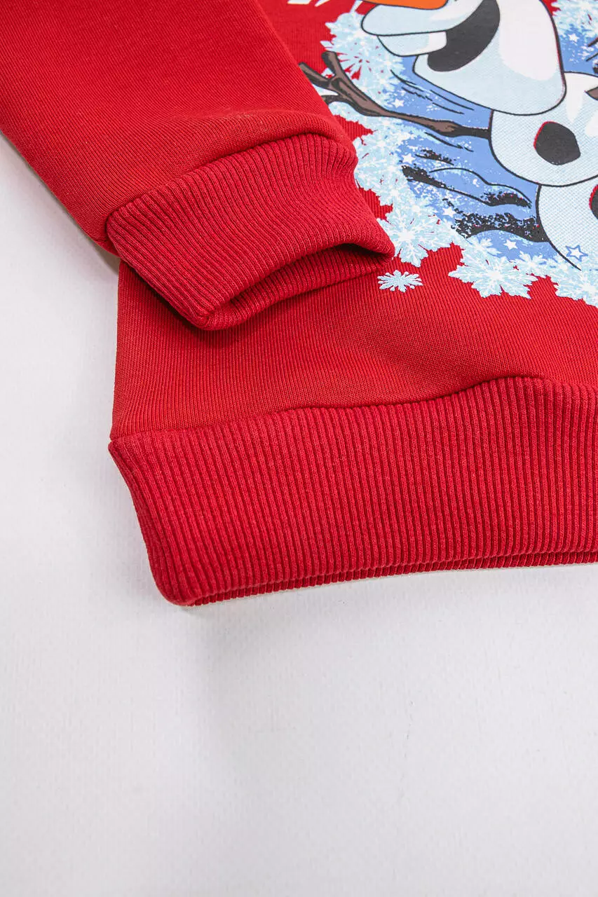 Джемпер имеет в рукавах и внизу трикотажный манжет. Нанесен новогодний принт.