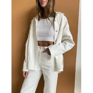 Сорочка подовжена та має дві накладні кишені, застібається на ґудзики, штани прямого крою та високої посадки.