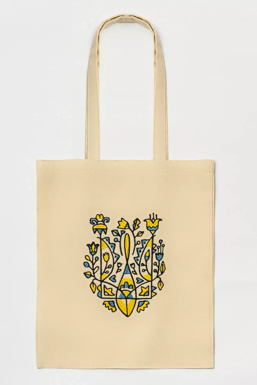 Еко-сумка для покупок "Тризуб квітковий" у бежевому кольорі із