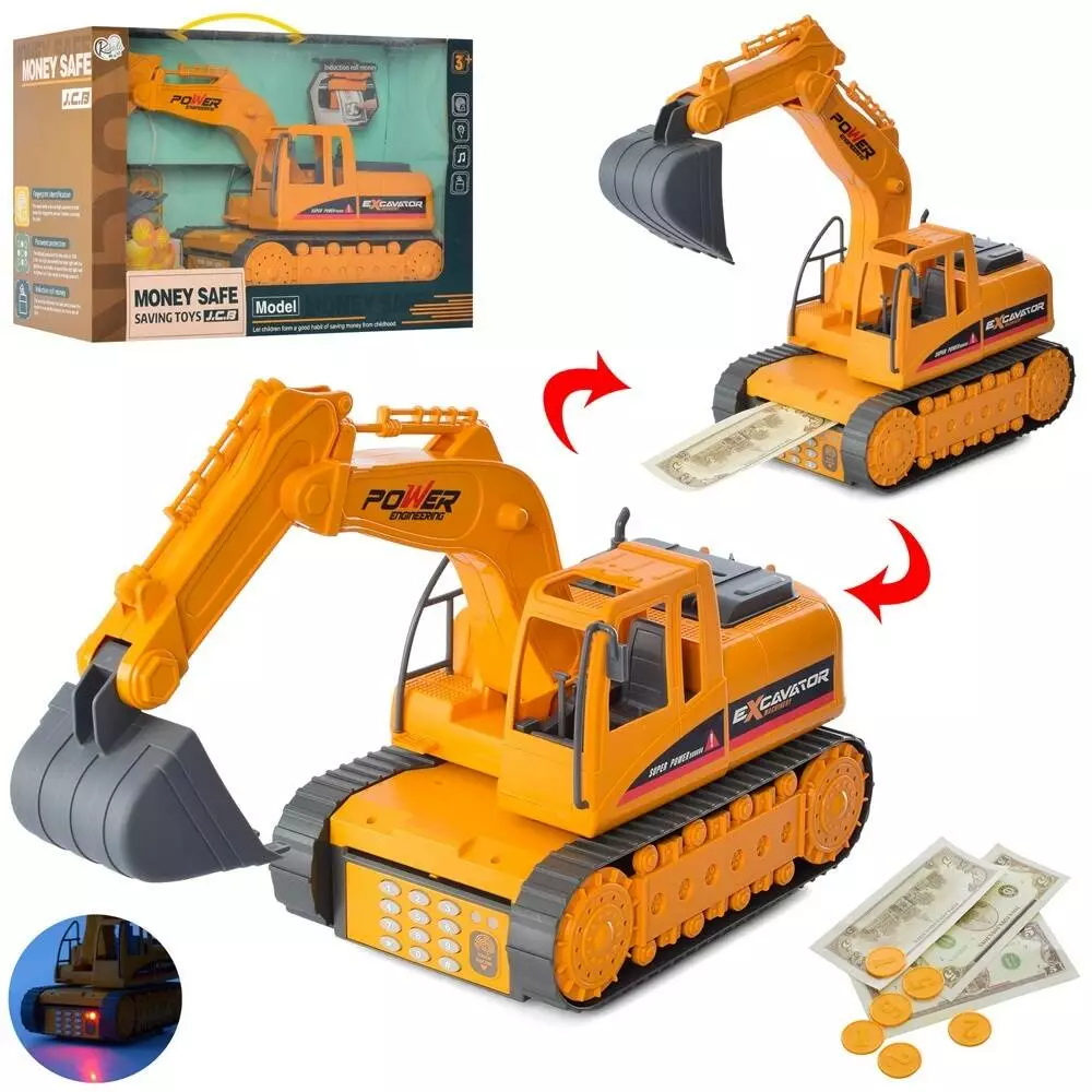 Екскаватор WF-3007A скарбничка/сейф, рухомі деталі, муз., світло, бат., кор., 39,5-26-17 см.