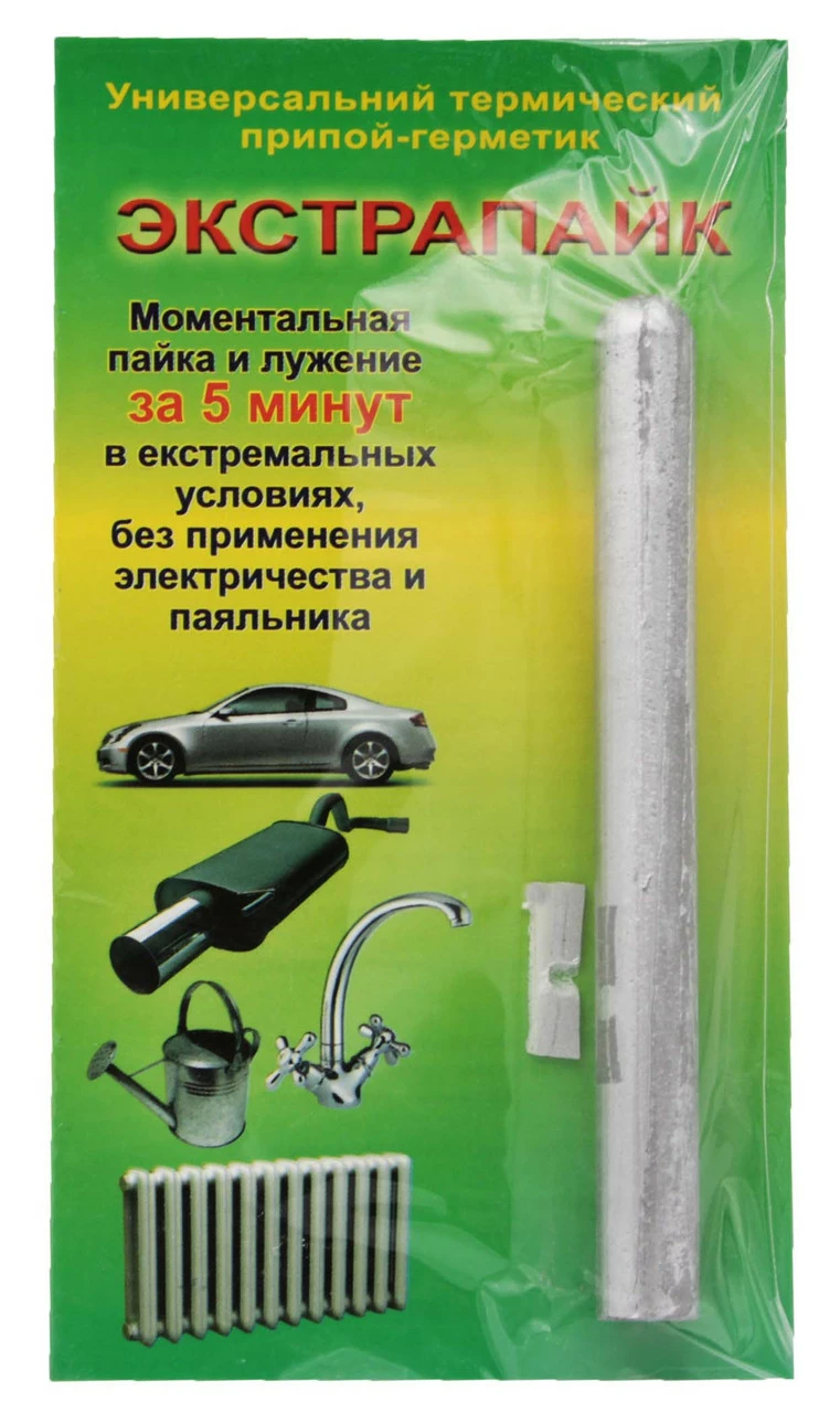 Экстрапайка бывает нужна каждому хозяину. Сломался ключ, протекает батарея или кран? Когда срочно нужно что-то спаять, поможет экстрапайка. Универсальный термический припой-герметик — клеевое вещество «на скорую руку», которое легко заменит сварочный аппарат или паяльник.