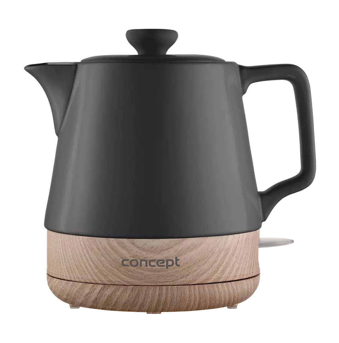 < Електричний чайник RK0062 з першого погляду вражає своїм унікальним дизайном, в якому стильно поєднуються кераміка і дерево. Перевага в тому, що ви також можете використовувати його як класичний чайник і подавати улюблений напій прямо на стіл. Він має об'єм 1 л, тому підходить для домогосподарств з меншою кількістю членів.