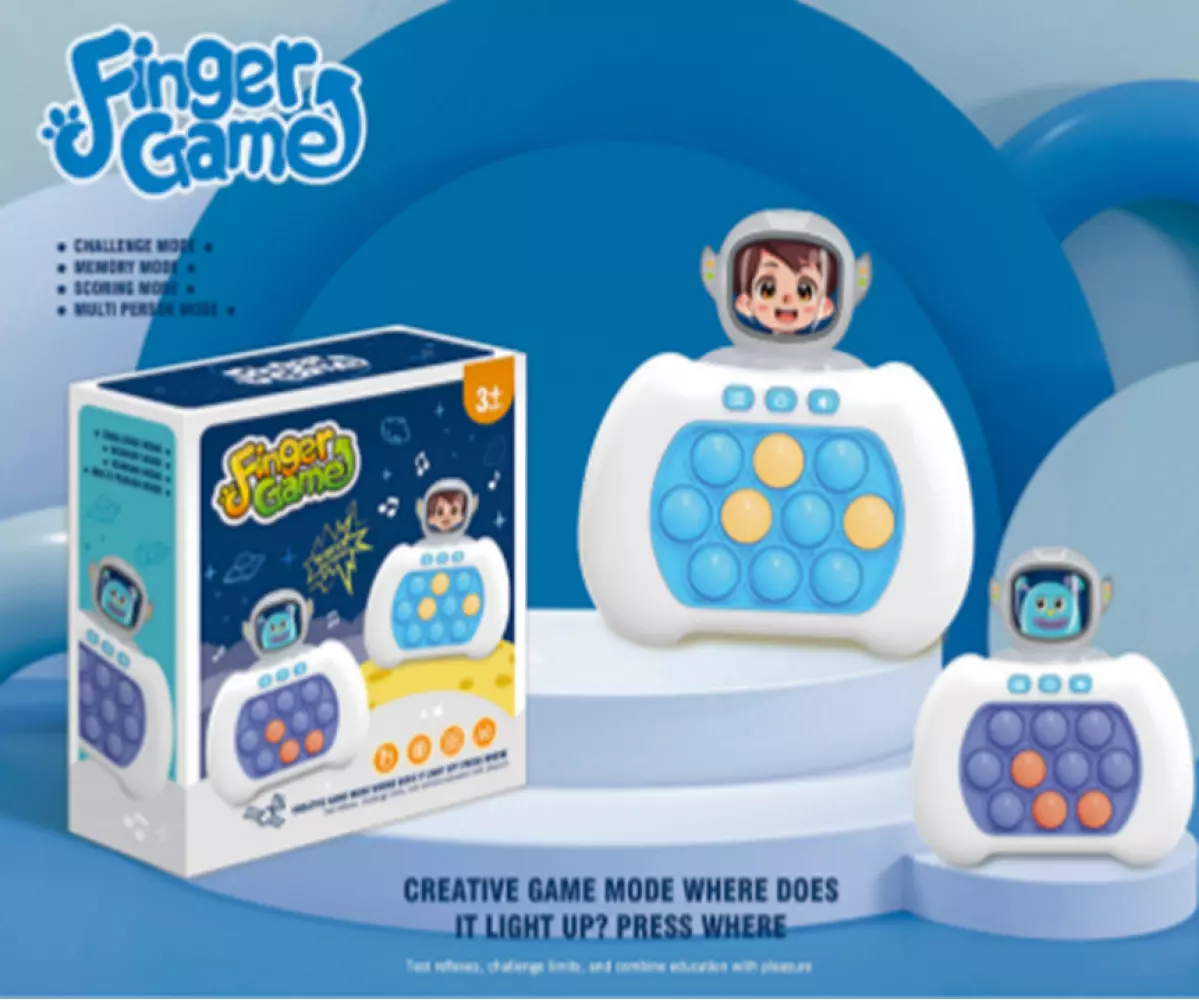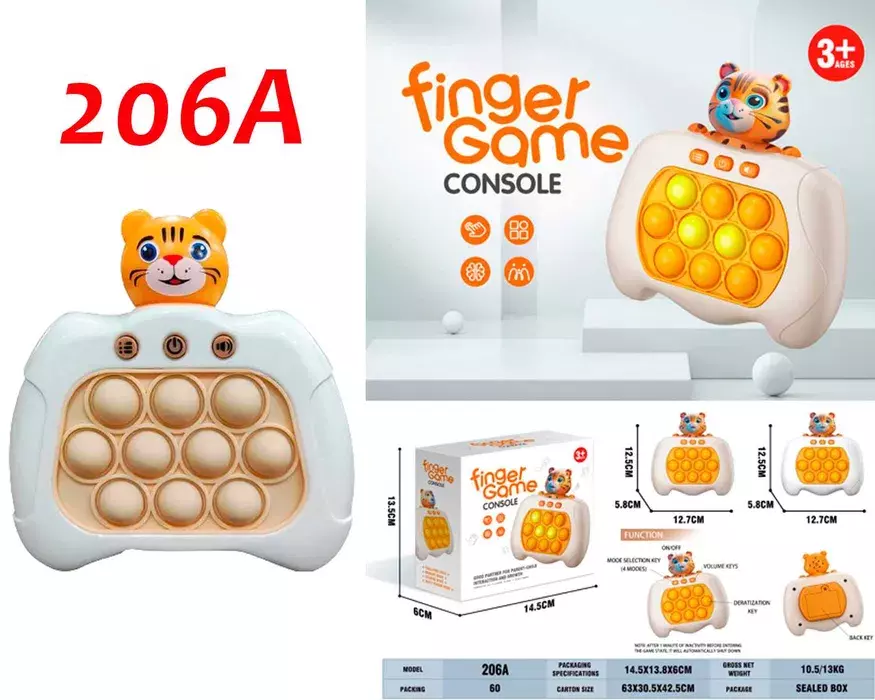 Ігрова консоль-головоломка з ямочками-бульбашками як у відомих іграшках Pop It та Simple Dimple. Мета гри: якнайшвидше натискати на кнопочки, що підсвічуються (*натискати потрібно досить сильно, поки кнопка не перестане світитися). Є 4 режими гри. Іграшка-головоломка "Finger Pressure" допоможе зняти стрес, а також сприяє розвитку уваги, дрібної моторики та реакції. Підійде і для дорослих, і для дітей. Працює від 3 батарейок ААА (немає в комплекті).