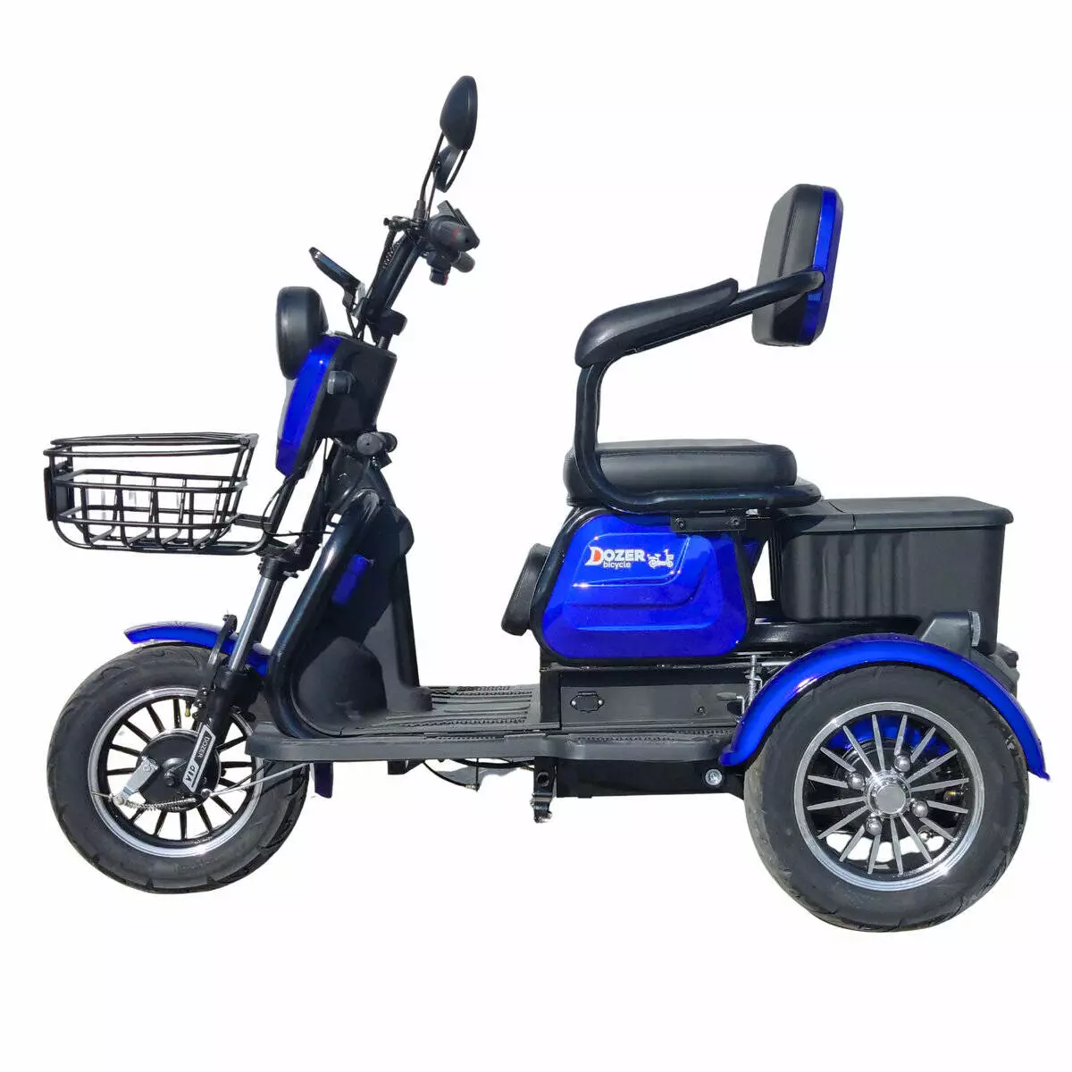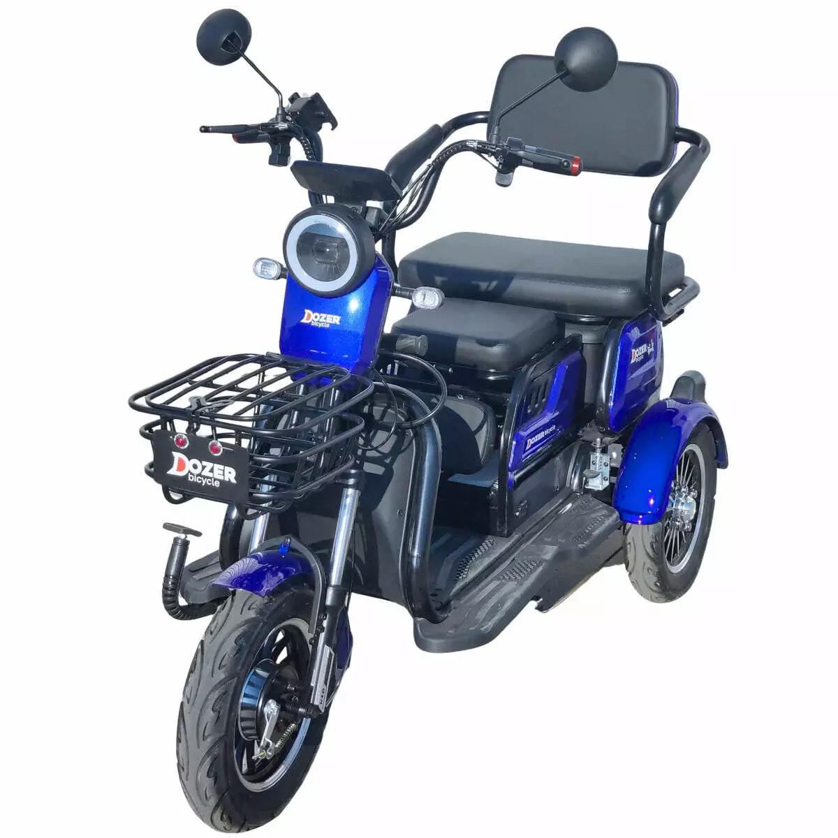 Електротрицикл DOZER Model 4E — пасажирський транспорт для комфортного перевезення у міських і приміських умовах. Конструкція поєднує стійкість, маневреність та плавний хід завдяки гідравлічній системі амортизації. Світлодіодне освітлення, стоп-сигнал і звуковий сигнал підвищують рівень безпеки. Акумулятор забезпечує тривалу роботу без частих підзарядок, що робить модель практичною для щоденного використання.