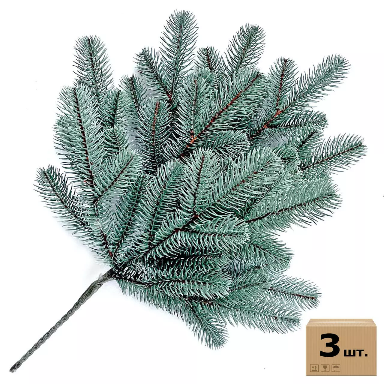 Еловая ветка искусственная Lux 60 см голубая (в упаковке 3 штуки)