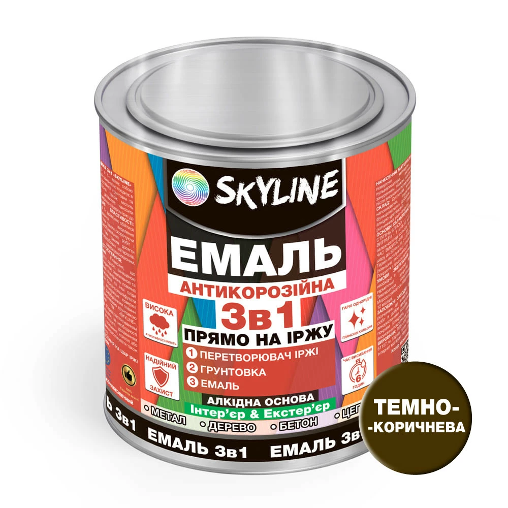 Эмаль алкидная 3 в 1 по ржавчине антикоррозионная «Skyline» Темно-коричневый 2.5 кг