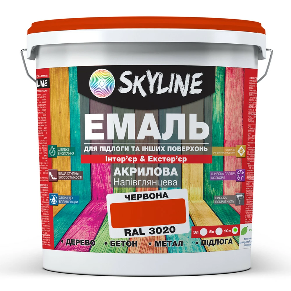 Эмаль для пола SkyLine Красный RAL 3020 10 л