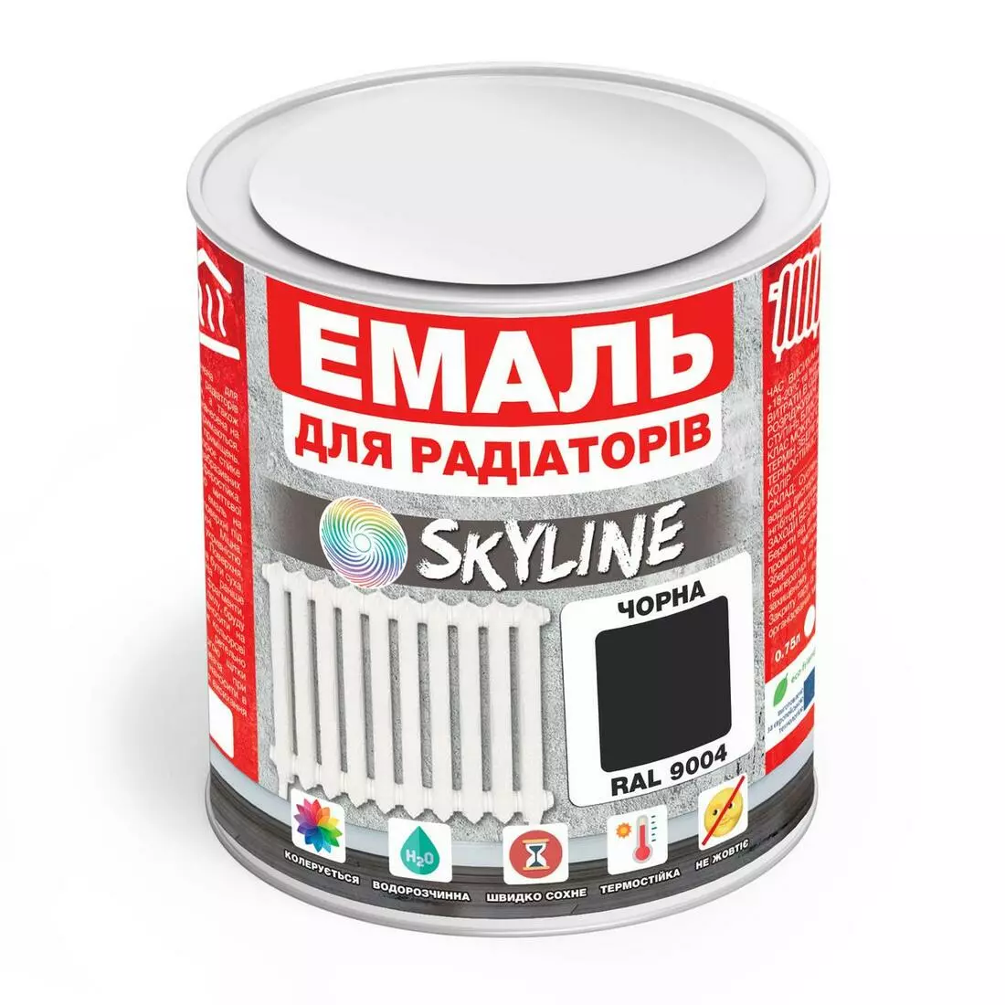 Эмаль Для Радиаторов акриловая термостойкая глянцевая SkyLine 0.75 л Черная RAL 9004