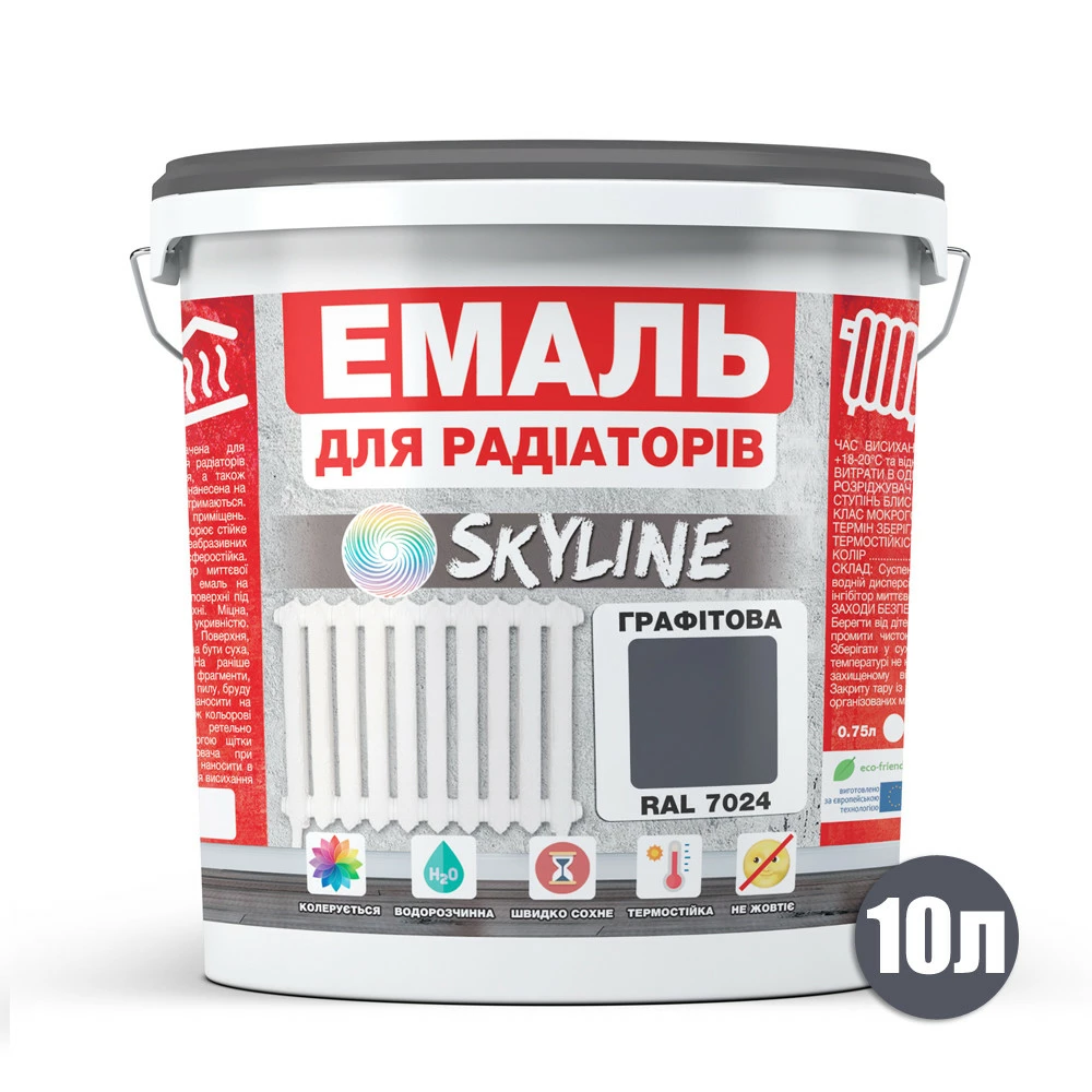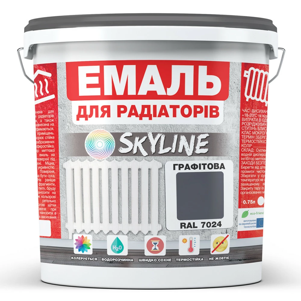 Эмаль Для Радиаторов акриловая термостойкая глянцевая SkyLine 10 л Графитовая RAL 7024