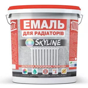 Высококачественная глянцевая белоснежная акриловая эмаль на водной основе «Эмаль Для Радиаторов SkyLine» (Скайлайн). Термостойкая – выдерживает температуры до +120°С. Не имеет запаха. Быстро сохнет. Не желтеет. Предназначена для декоративно-защитного окрашивания радиаторов отопления и труб водоснабжения, а также загрунтованного металла. Может быть нанесена на старые алкидные покрытия, которые крепко держатся. Используется внутри помещений. Создает стойкое к механическим нагрузкам и неабразивным моющим средствам покрытие. Атмосферостойкая. Содержит в своем составе ингибитор коррозии, который позволяет нанести эмаль на участки негрунтованной металлической поверхности во время проведения работ по реставрации поверхности. Крепкая, эластичная, с высокой адгезией и укрываемостью.
