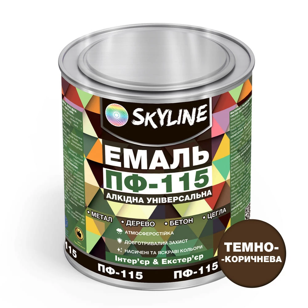 Эмаль ПФ-115 алкидная универсальная атмосферостойкая «Skyline» Темно-коричневый 0.9 кг