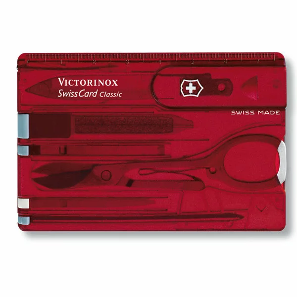 Лёгкий, компактный, удобный и универсальный швейцарский нож набор Victorinox Swisscard 0.7100.T. С первого взгляда напоминает не складной нож, а именно банковскую кредитную карту. Во всем мире Victorinox Swisscard 0.7100.T называют ещё и «Швейцарской картой». Однако, Victorinox Swisscard 0.7100.T – это целый набор универсальных элементов, которые пригодятся в ежедневном использовании для каждого. Особое внимание этой модели уделяет прекрасная половина человечества. Ведь, в первую очередь модель притягивает женский взгляд за счёт жгучего ярко-красного, полупрозрачного цвета. Поэтому даже не открывая «Швейцарскую карту» Вы с лёгкостью сможете рассмотреть каждый эксклюзивный инструмент. Отдельно стоит отметить и многофункциональность Victorinox Swisscard 0.7100.T. Поскольку, с помощью этой модели Вы сможете к примеру, легко разрезать бумагу или же почистить фрукты. К тому же при необходимости Вас всегда выручит шариковая ручка. А в уходе за ногтями Вам поможет эксклюзивная пилочка с очистителем.