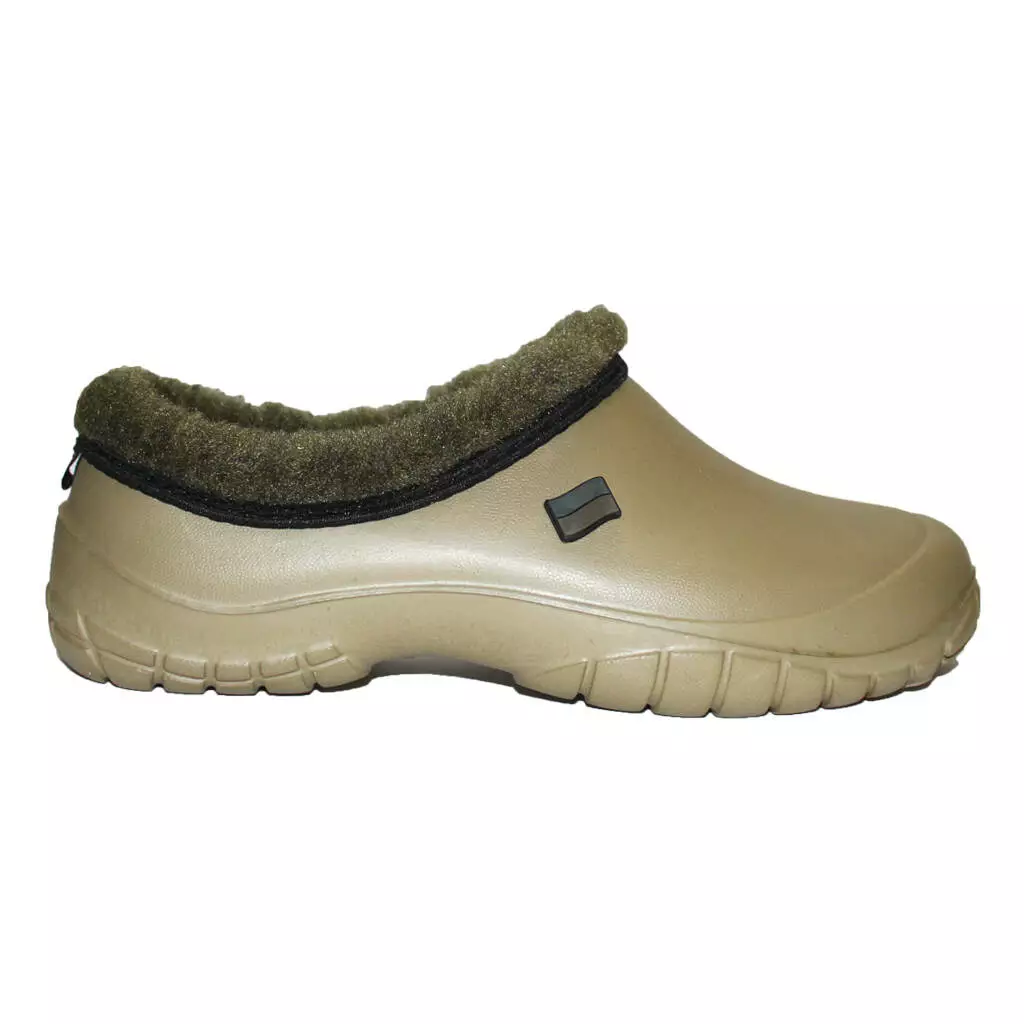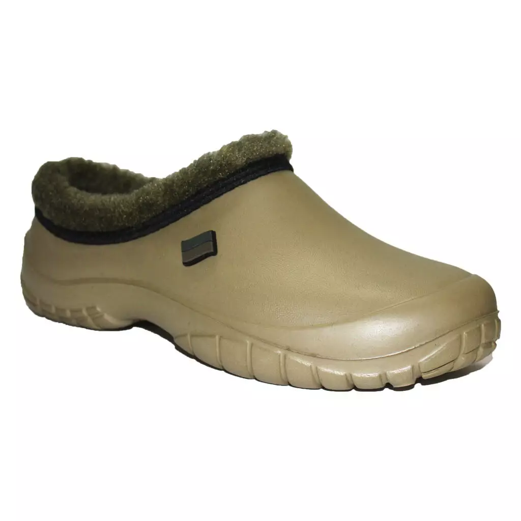 Чоловічі НАПІВОБШИТІ утеплені калоші - взуття на прохолодну дощову погоду і сльоту в осінньо-зимовий період. Калоші суцільнолиті, виготовлені з сучасного полімеру ЕВА. Край взуття обшитий штучним хутром, всередині знімна двошарова хутряна/повстяна устілка.